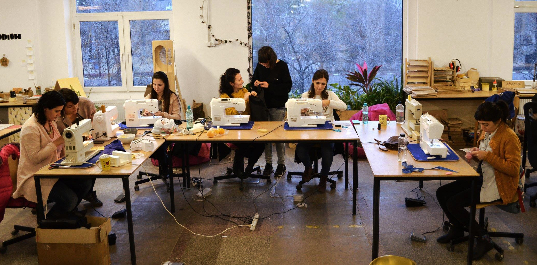 • CristinaCristina scoate mașinile de cusut (8 bucăți) pentru un atelier repair-cafe cât e ziua de lungă și invită în atelier pe oricine are de reparat, ajustat, transformat o haină, un accesoriu de care nu este pregătit să se despartă. Planul ei măreț este să le arate oamenilor rolul responsabil față de Mama Planetă și toate viețuitoarele ei, dar și față de corpul propriu, prin cursuri și produse adaptate la nevoie.