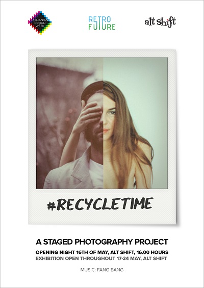 #recycletime is a staged photography project carried out by Retro Future team & contributors. It consists in the production and display of seven printed photographic works that depict 7 key people in arts/culture/fashion transported by Retro Future into specific periods in time that they select. Oana Maria, Florin Piersic Jr., Alexandrina Hristov, Lucia, Simona Cuciurianu, Mihai Smarandanche and Nicoleta Lefter chose to travel into their favorite moments in time, recreated by Retro Future with conceptual elements. The reinterpretation of various decades is made in the rhealm of recycling and revaluating the past with futuristic elements. The project includes creative direction, set and costume design, make-up, hair, styling and photography from seven distinct teams of artists united under the Retro Future umbrella.