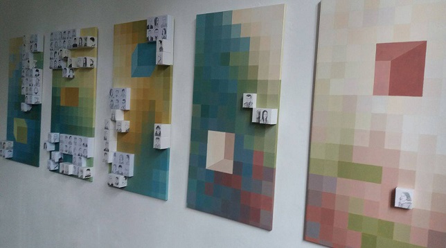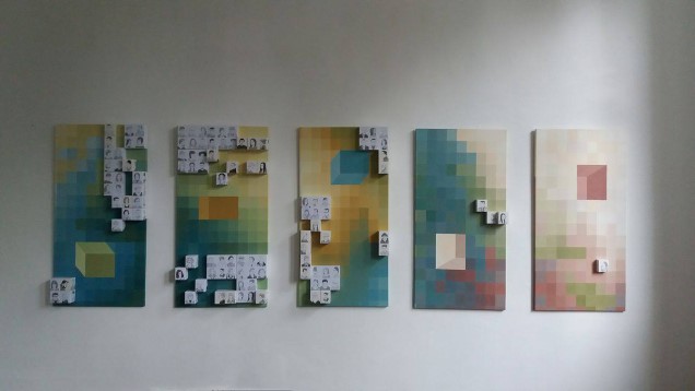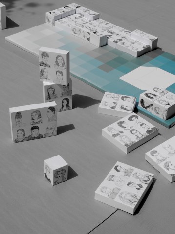 Conștientizarea numărului real al oamenilor a grăbit procesul de reprezentare și a activat nevoia de a surprinde cantitatea, totodată de a realiza paradoxal pustietatea de care se lovesc unii. Reprezentarea pe pânză a mediului a fost realizată printr-un joc de forme geometrice de aceeași dimensiune, însă de tonuri și nuanțe diferite, creând o repetiție, un pattern ce nu se vrea spart sau întrerupt. Intervenția pe acest ritm, a fost de a adăuga cutii-obiect din hârtie cu portretele oamenilor pentru a crea un joc de volum tridimenional.