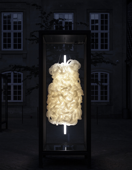 Kathrine Barbro Bendixen este o tânară artistă din Copenhaga, care prezintă în cadrul expoziției lucrarea Inside Out, o instalație luminoasă realizată din intestine de vacă. Kathrine oferă valoare unor materii prime considerate de mulți nefolositoare, poate chiar deșeuri, aducând astfel în prim plan o abordare sustenabilă a designului prin folosirea unor materiale neconvenționale.