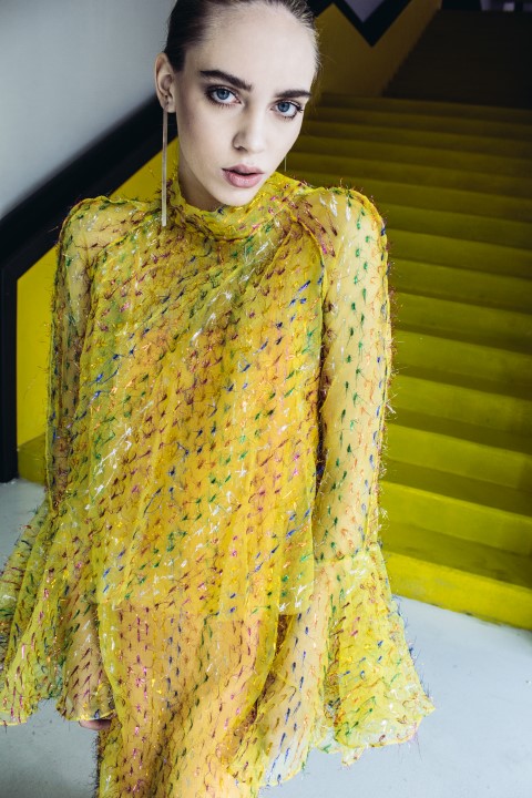Sabina Pop a absolvit recent Universitatea de Artă și Design din Cluj Napoca, România. Interesată de fluidititatea dintre cele două discipline-arta și designul, Sabina transpune percepția ei asupra hainei folosindu-se de volume simple, materiale neconvenționale, încercând să creeze piese ready-to-wear.