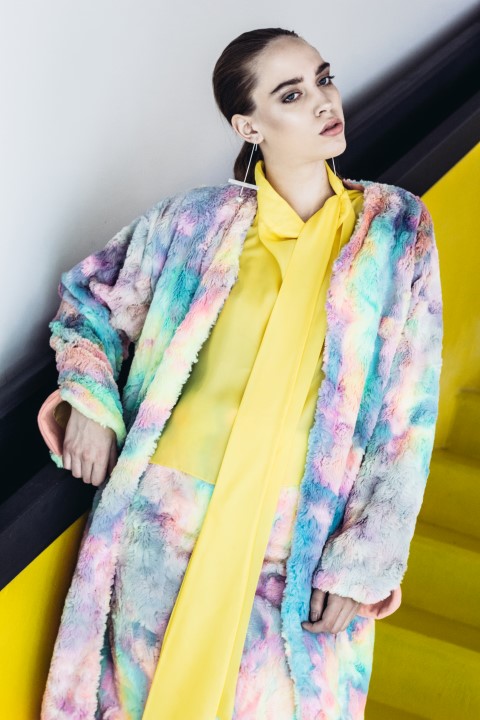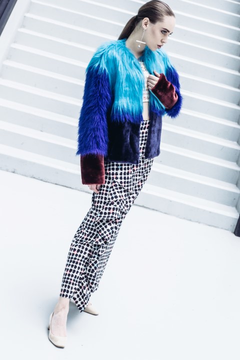 Anii 60, feminism, artă, blană, blocuri cromatice, artă contemporană, libertate, emancipare, geometrie, gen, mișcări de guerilă-sunt cuvintele care descriu colecția de disertație a Sabinei, prezentată la Gala UAD 2016.