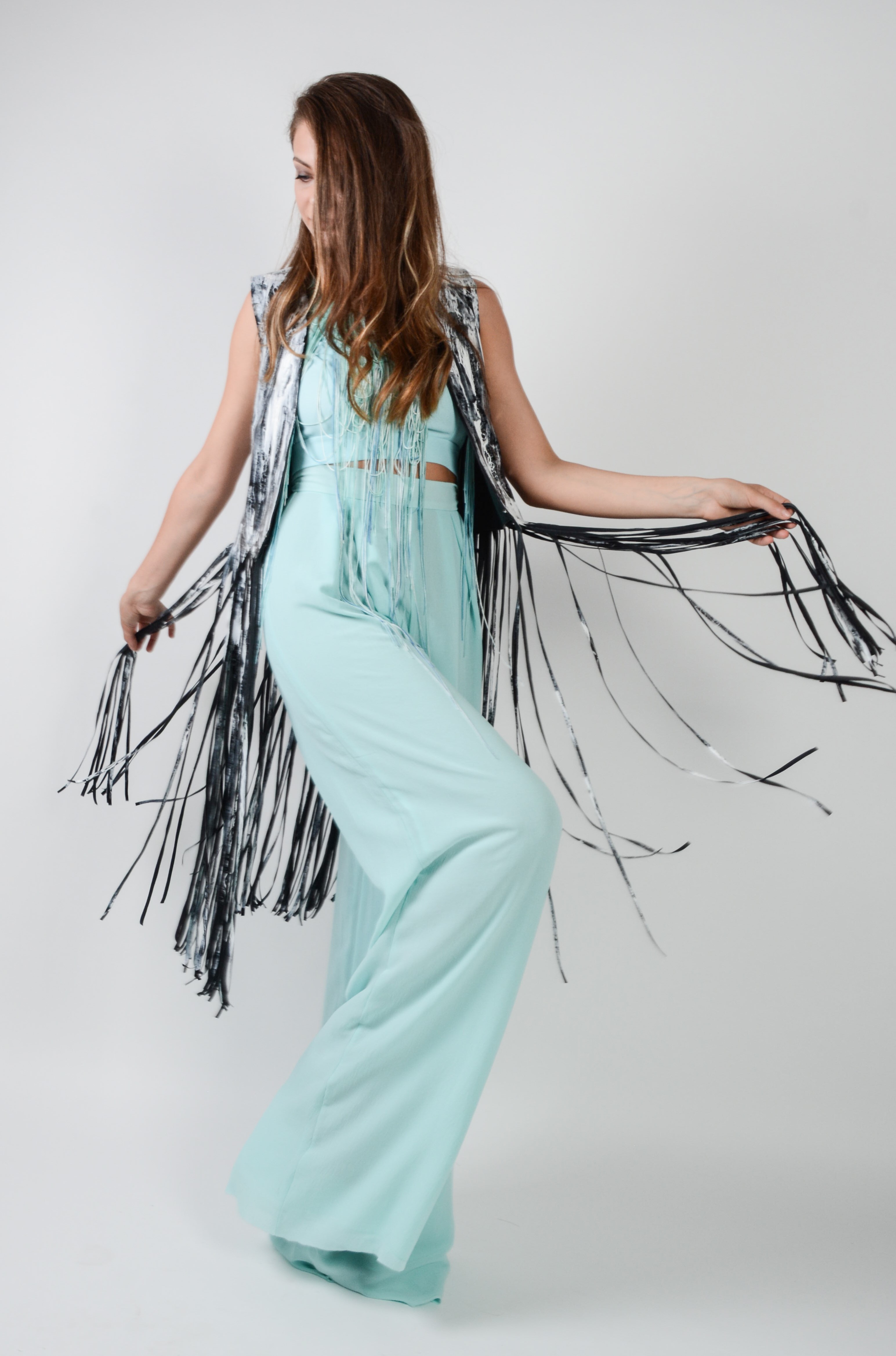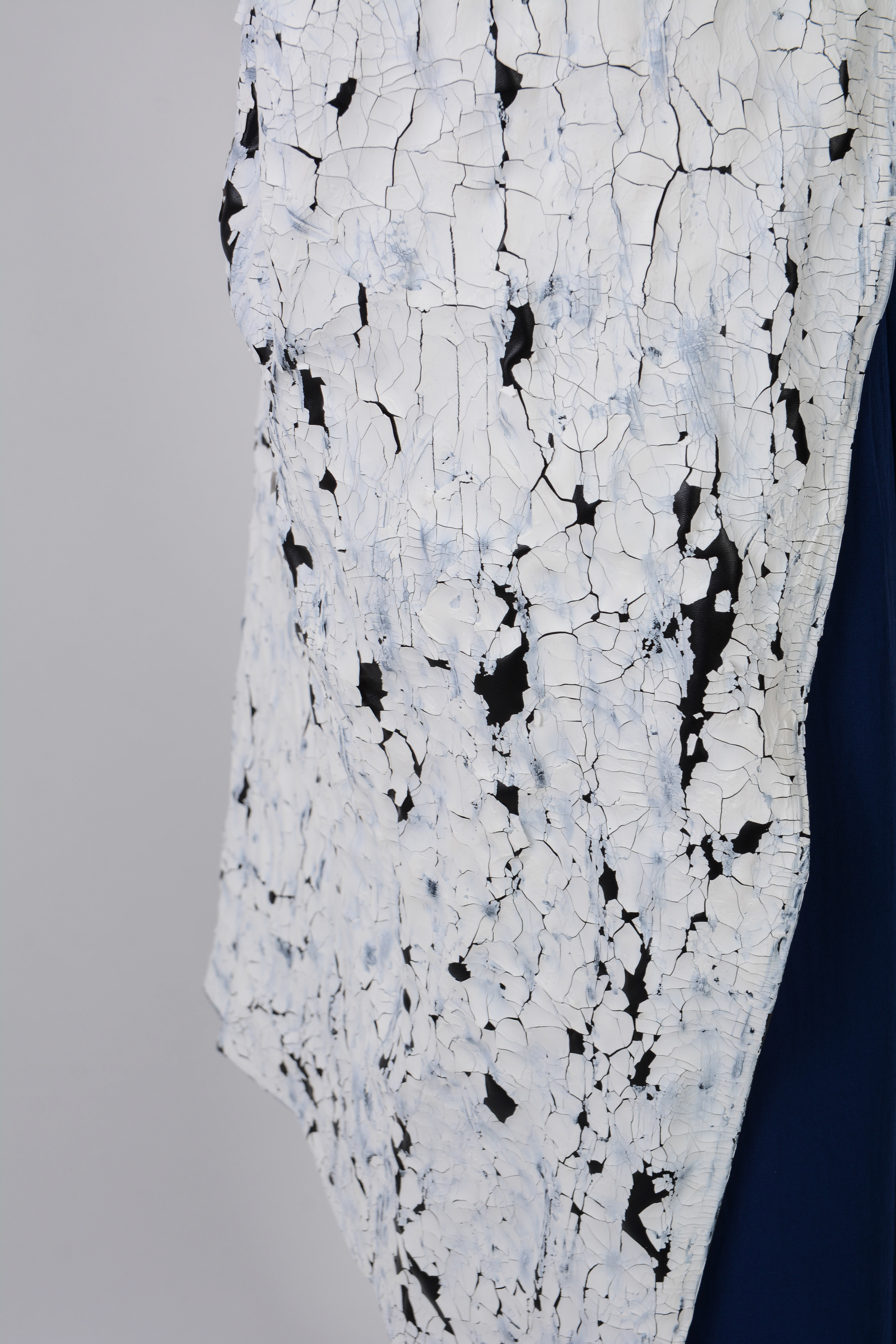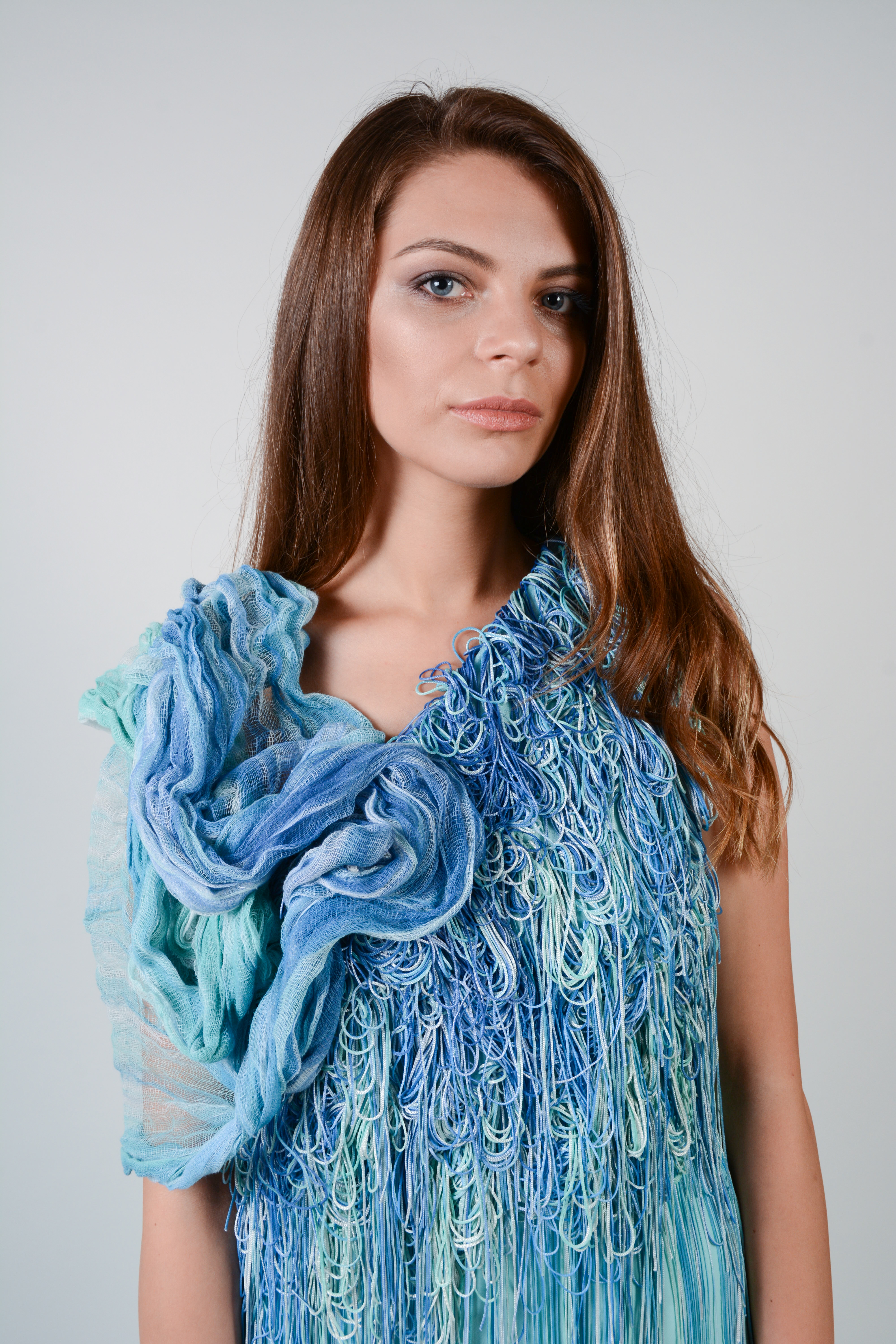 Treptat, în călătoria spre sine, trăind în prezent, acesta își redobândește libertatea, se reconectează la sine, își curăță conștiința și își umple de culoare viața cândva anostă. Acest parcurs este subliniat prin introducerea treptată a materialelor fluide, în nuanțe de albastru – culoarea absolutului și a libertății. Materialele folosite în colecție au fost manipulate prin mediumuri de crăpare și vopseluri utilizate în diferite tehnici, după care au fost croite ori aplicate manual.