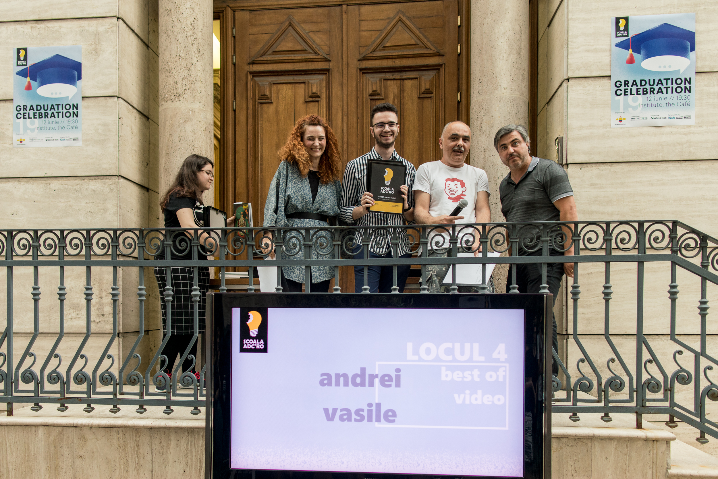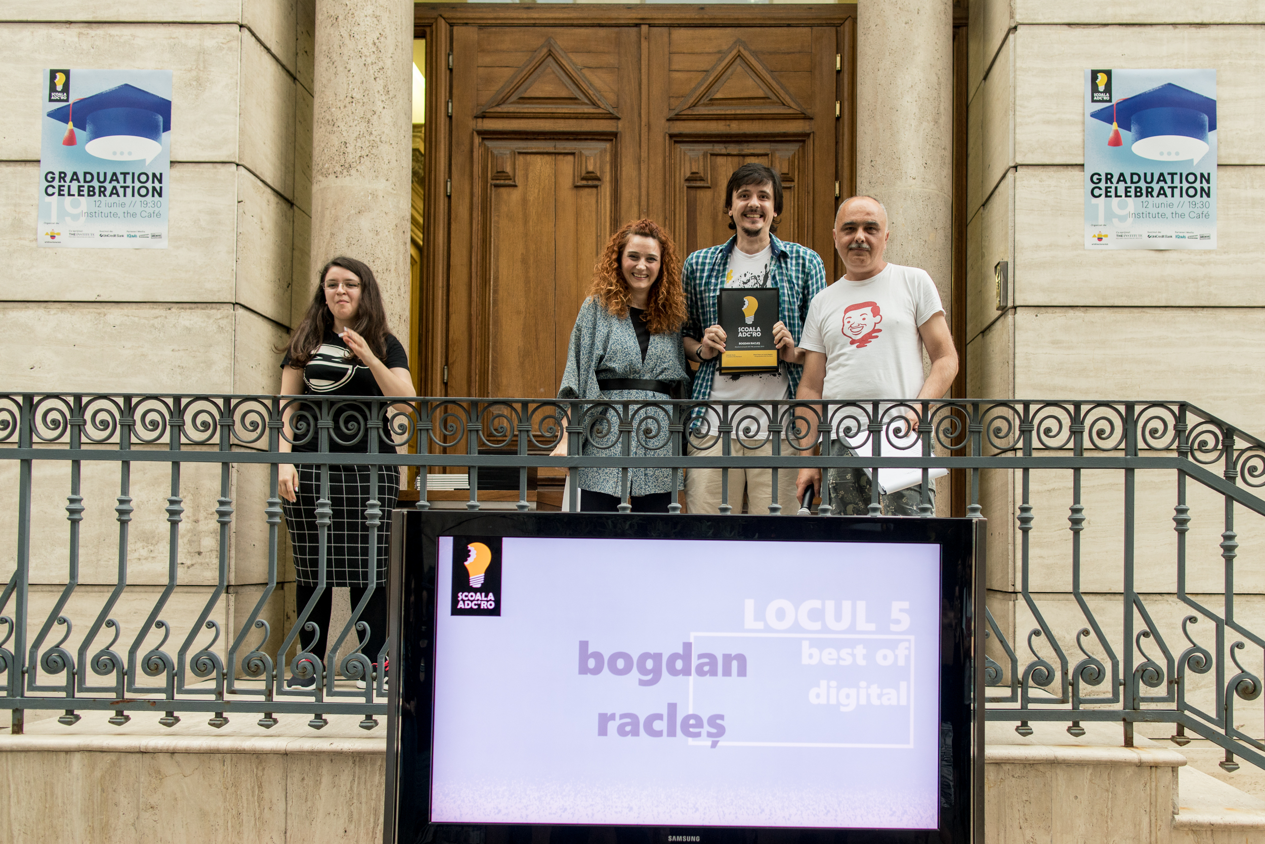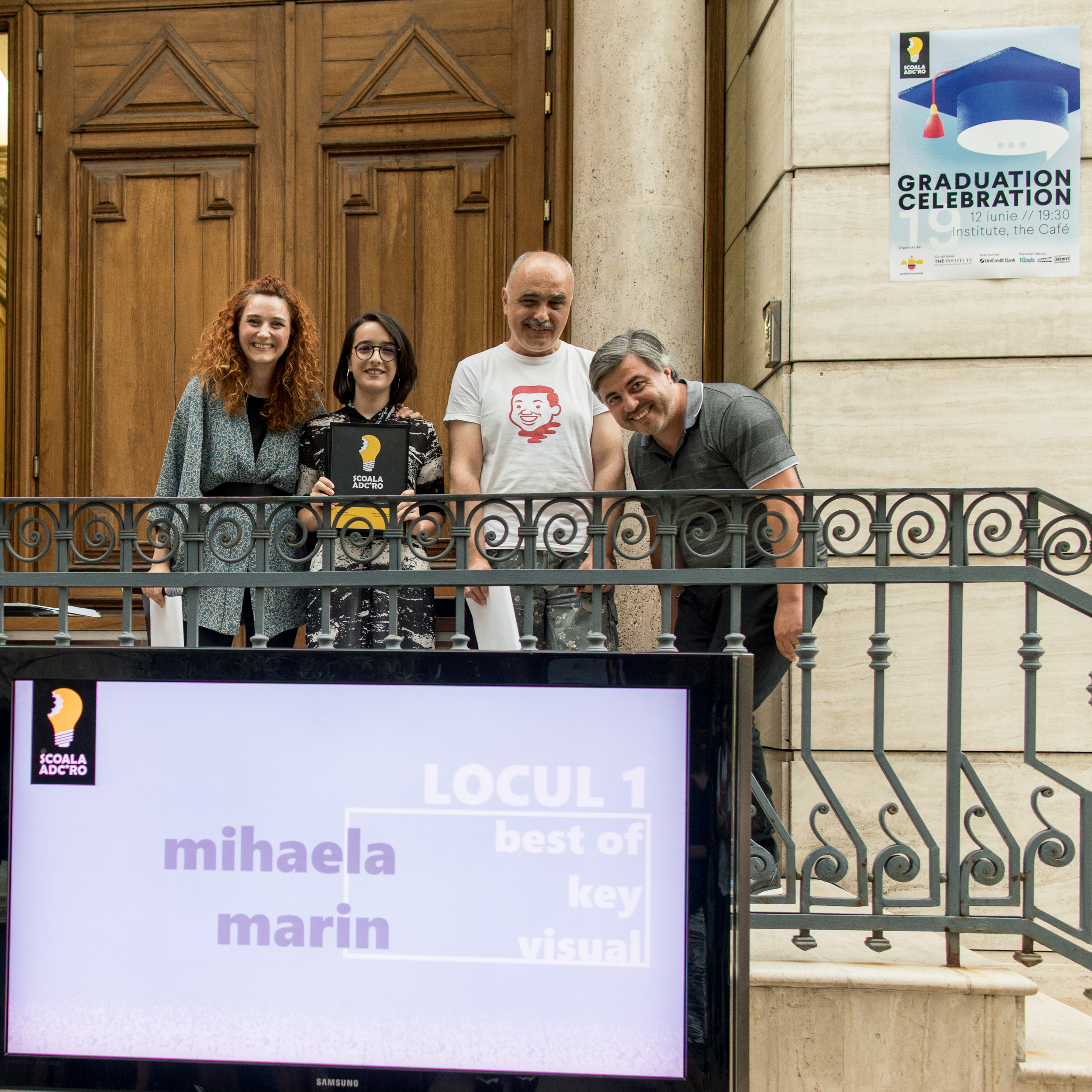 Mihaela Marin, şefa de promoţie a acestui an, a câştigat şi Bursa Ionuț Popescu, art director și fotograf, care și-a pierdut viața în urma incendiului de la Colectiv. Bursa este în valoare de 600 euro şi este oferită anual cursantului Școlii ADC*RO care se situează pe primul loc la finalul școlii. Mihaela a primit de asemenea si 2 full pass invites la iCEE.fest: UPGRADE 100, festival de digital & noi tehnologii şi la Conferinţa Globală IAA – Creativity 4Better, ediţia a 4-a, care va avea loc pe 17 octombrie la Opera Română.