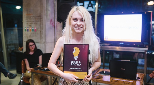 • Şcoala ADC*RO și-a premiat absolvențiiKarla Georgescu - locul 1, câștigătoare Bursa Grolsch @Școala ADC