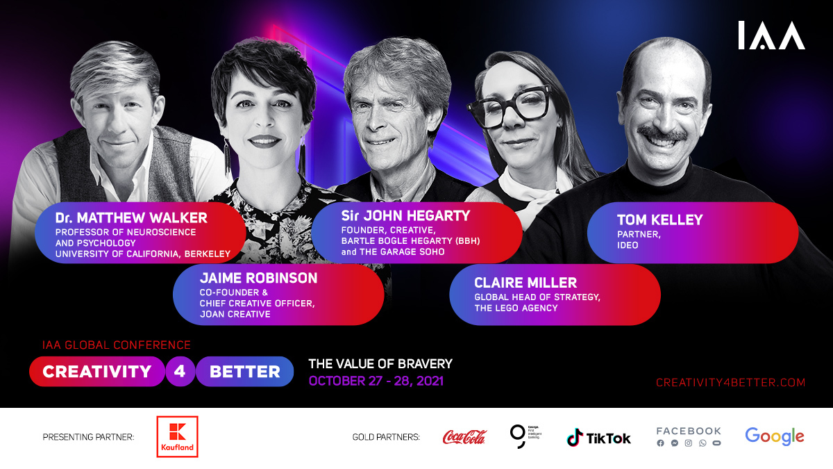 IAA Global Conference ”Creativity4Better” a ajuns la a 5-a ediție. Pe 27 & 28 octombrie vor urca pe scena virtuală speakeri de renume mondial, lideri globali în domeniul lor de activitate, care vor da ora exactă în creativitate, în încercarea lor de a face lumea un loc mai bun pentru toți. Evenimentul se va desfășura în format virtual și va putea fi urmărit online de către toți participanții.