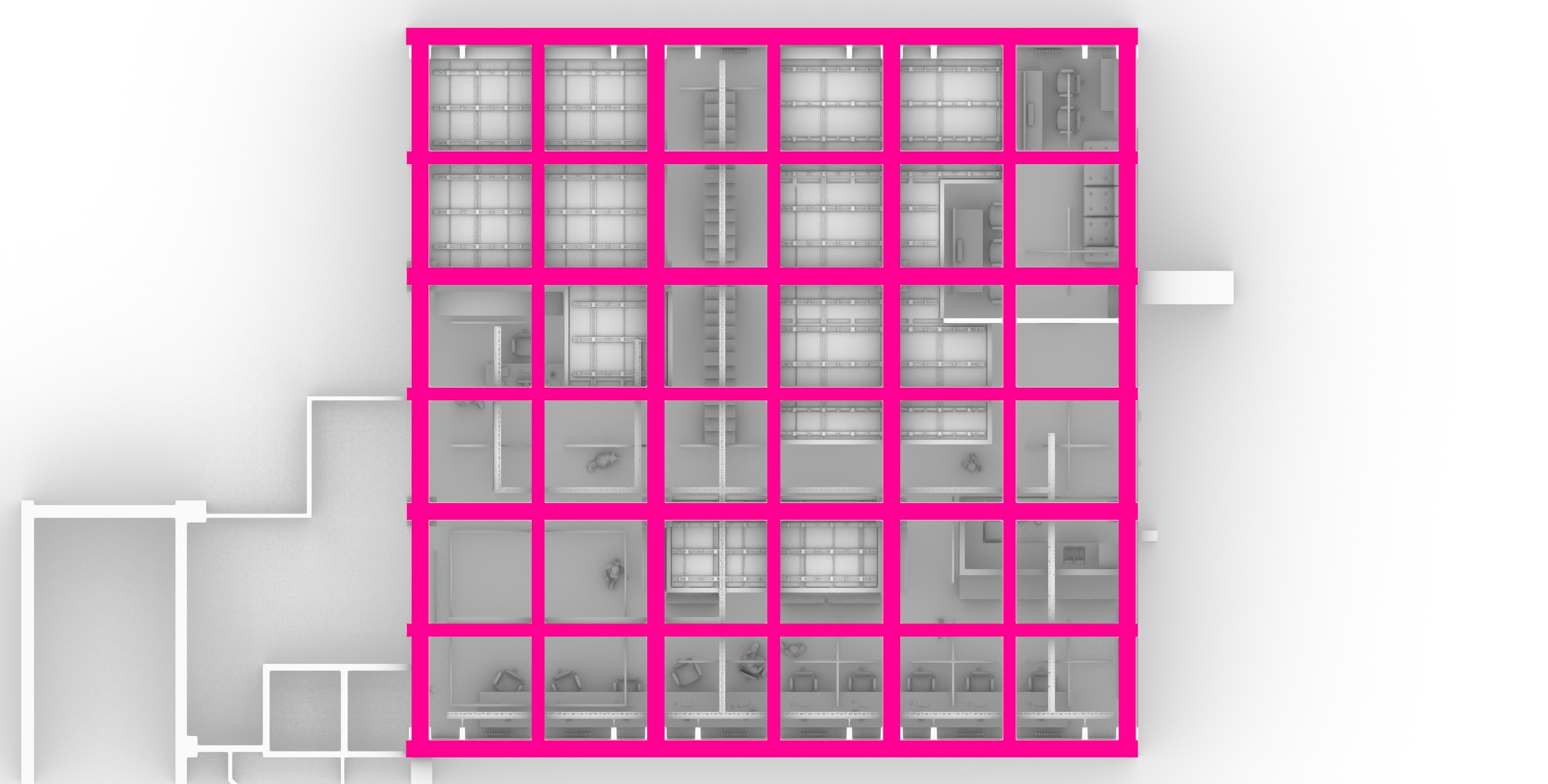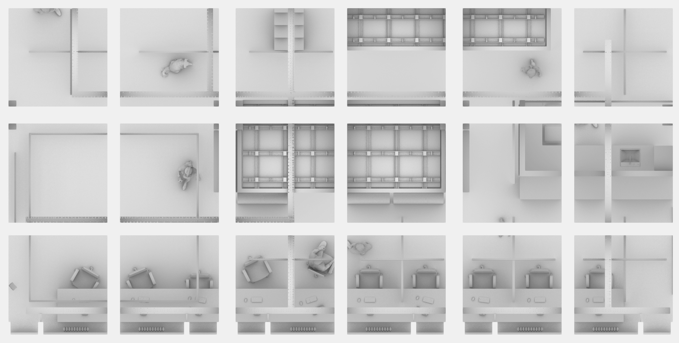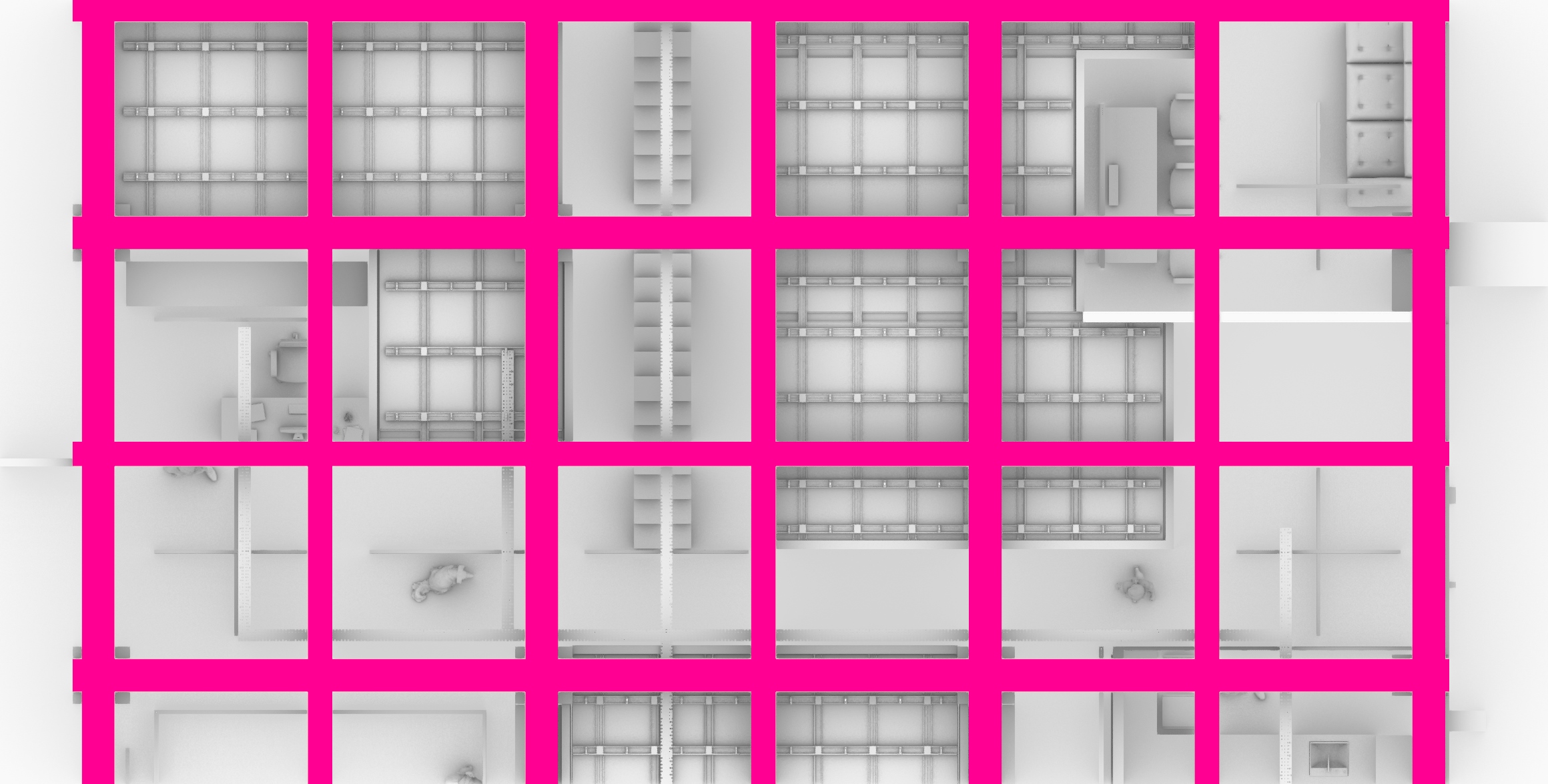 The high tech background that we are dealing with today allows us to look at space from various different angles. From a purely technical standpoint, space is the gap that takes shape between given borders. What is then the difference between a virtual and a "real" space? Isn't virtual space "real" as well? Can these two types of space complete each other? These are just a few questions that SeeThree is trying to raise through their showcase. The visitors will be able to have a tour through a virtual space, mirroring the working environment that they use on a daily basis. Less typically, given the creative nature of their field, they started this experiment by transforming a "real" space in a virtual one and not vice versa.