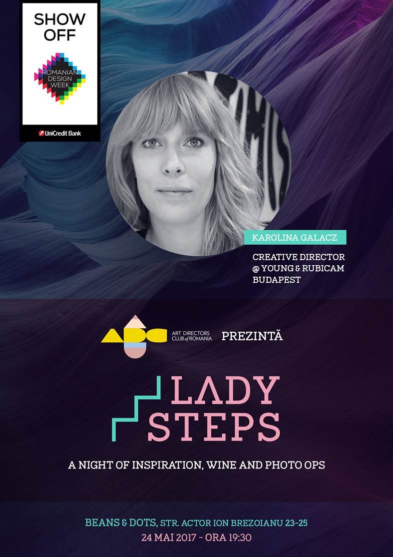 Lady Steps este un proiect ADC România inițiat de Simona Suman și Sandra Bold, în care femei de top din industrii creative vin să inspire prin exemplu personal și să-și ȋmpărtășească povestea lor de succes. Invitata ediției cu numărul patru este Karolina Galácz, Creative Director Young & Rubicam Budapesta.