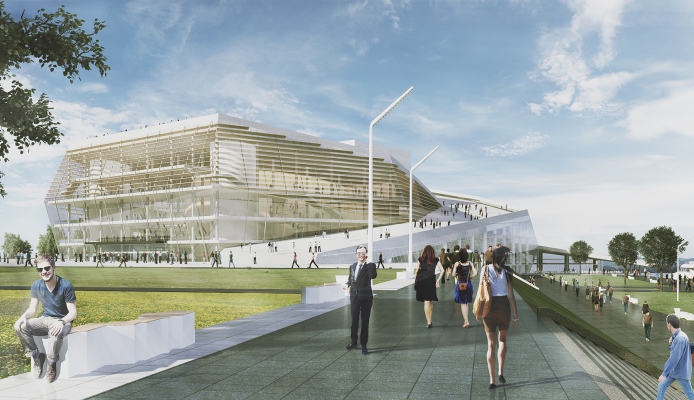 Forma dinamică a clădirii preia conceptul lui C. Parent și P. Virilio, conform căruia linia oblică incită și invită oamenii la perceperea spațiului prin mișcare. Clădirea devine astfel un spațiu viu, animat, pe care oamenii pot urca pentru a admira peisajul. Pantele au fost create pe direcția locurilor importante din împrejurimi: cetate, orașul vechi, Sava, Dunăre, muzeu, insulă, parc.