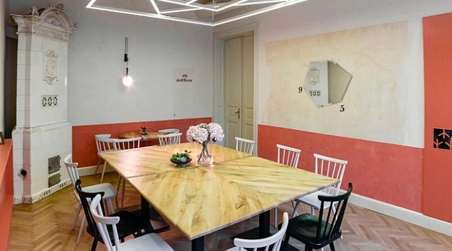 Simbio is an urban gastro-bar, a generous space designed in a 20th century built house, a symbiosis between functional and aesthetic. The ground-floor, a non-smoking area, includes the skylight room, the blue room, the pink room – L.B. (inspired by Louise Bourgeois) , as well as the green room with an open kicthen. The basement bar, a smoking area, has a capacity of 40 seats. Simbio’s guests will soon discover the garden and the attic, that will host big and small events, in a firendly and relaxed environment.