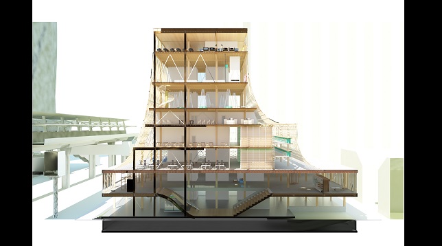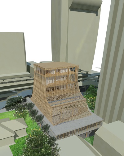 Volumul clădirii este inspirat din arhitectura tradițională thailandeză. Se știe că aceștia obișnuiesc să facă acoperișuri foarte înalte deoarece li se pare nefiresc ca etajele să se suprapună. Structura clădirii aminteste de structurile tradiționale chineze și este realizată din lemn lamelar încleiat.