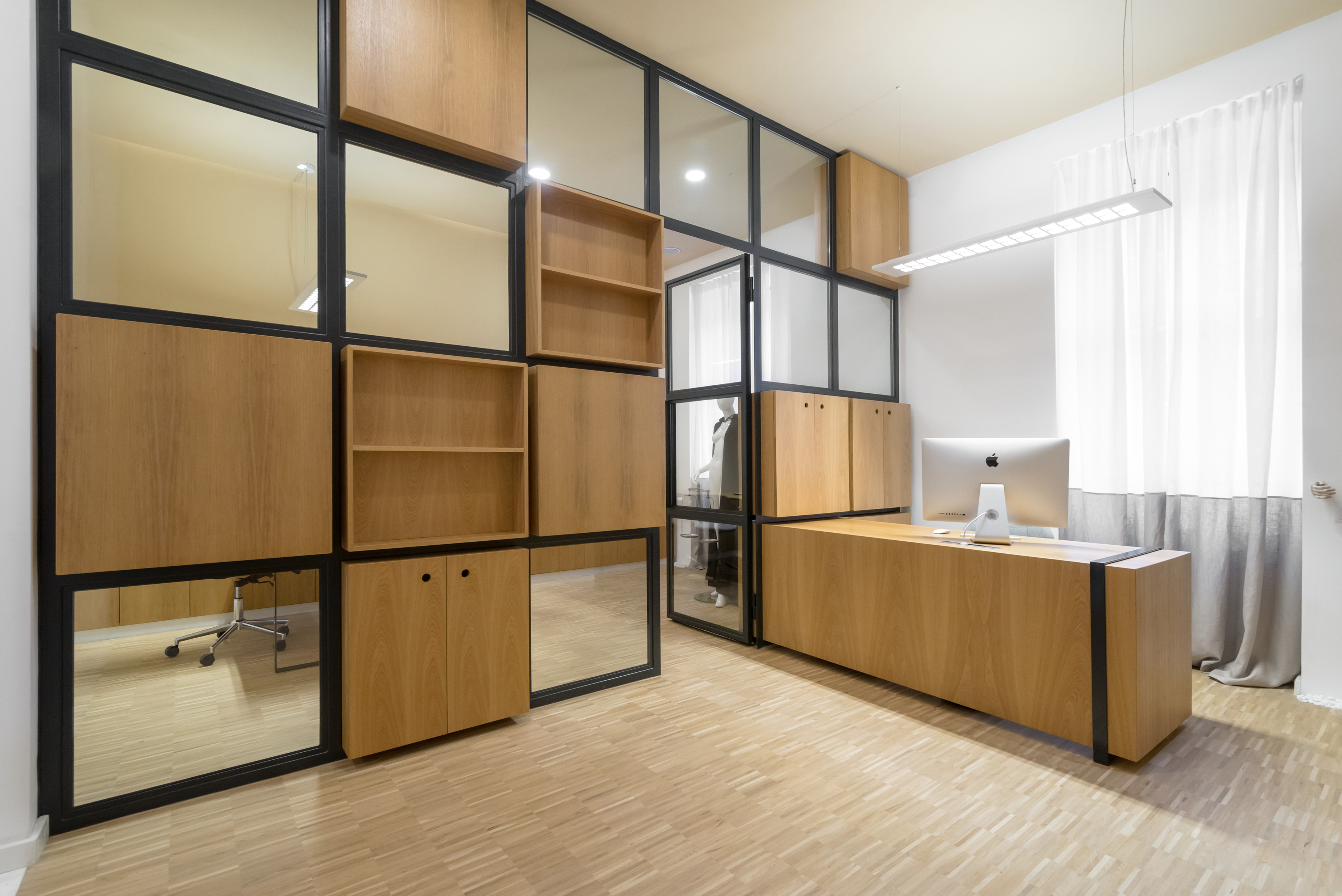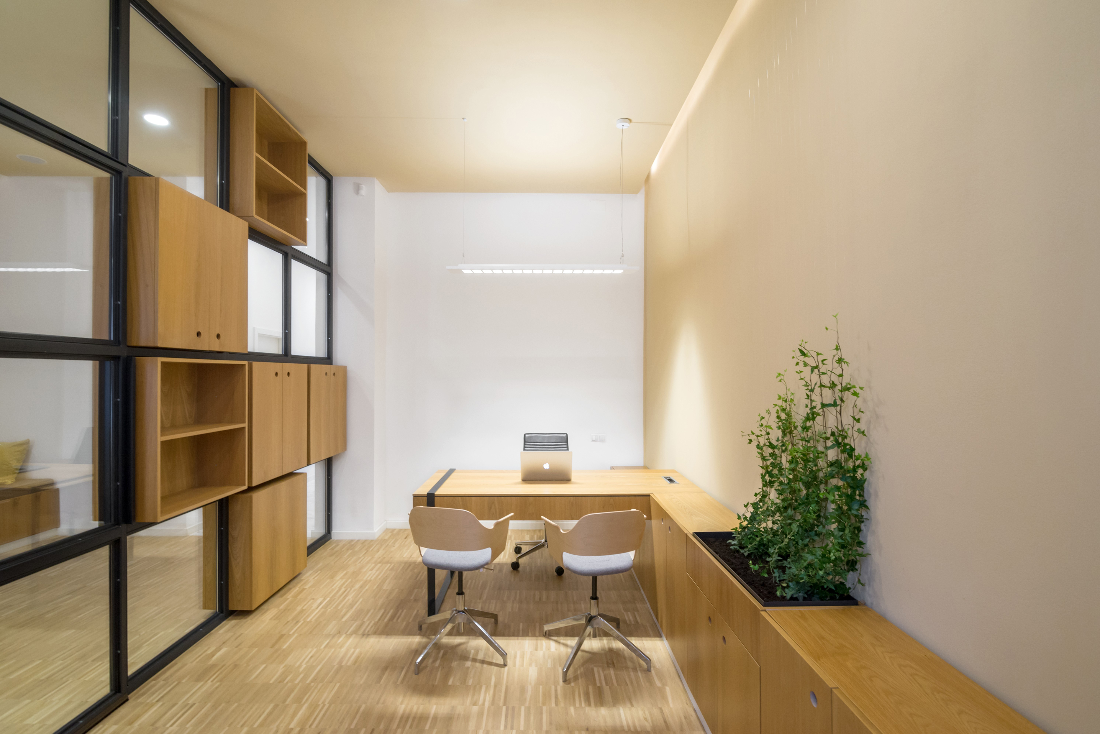 O soluție spațială care produce o tensiune în existent, dizolvată în mod pozitiv, liniștit și suveran cu ajutorul unui mobilier funcțional, adecvat.
