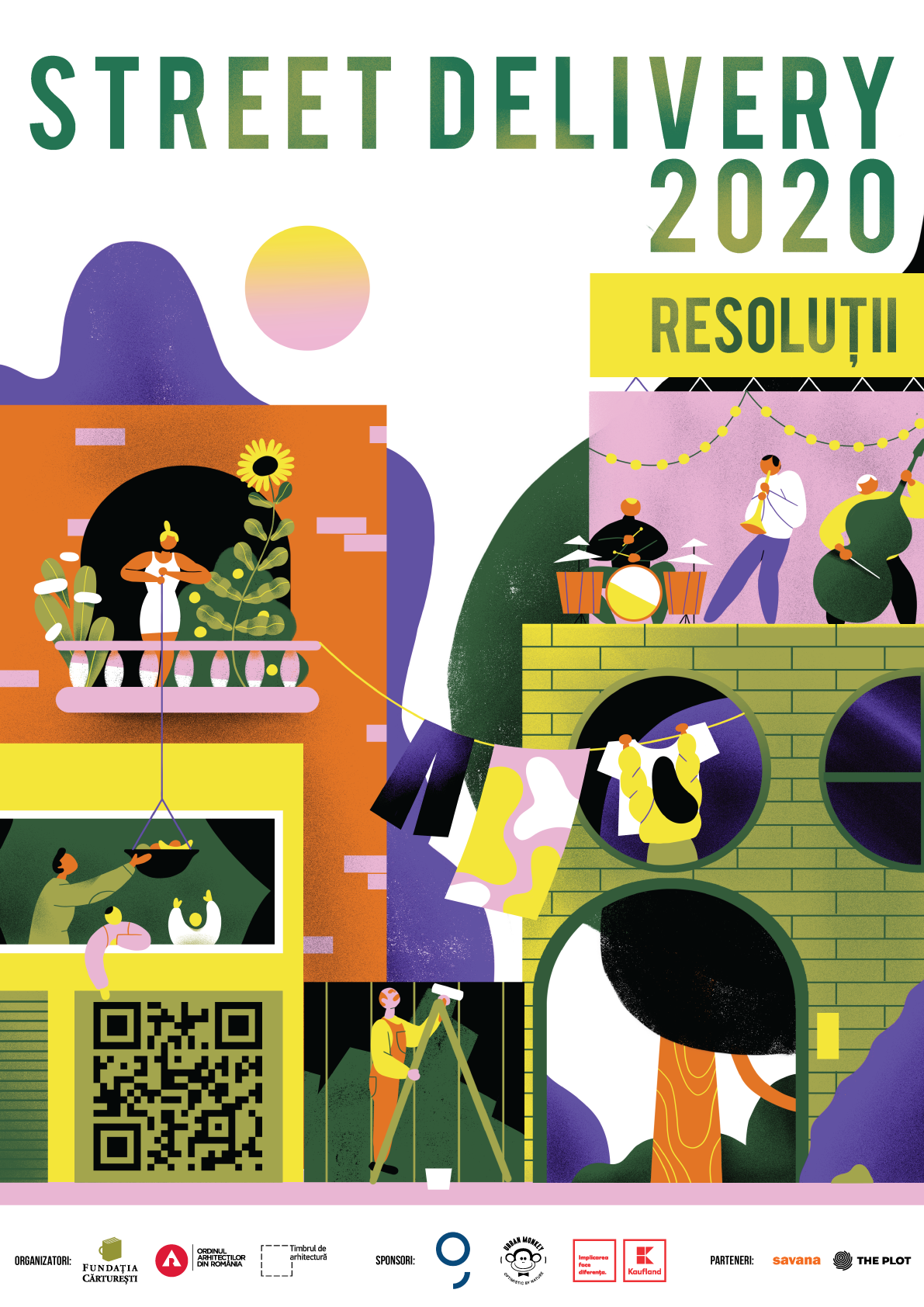 Street Delivery 2020 - ReSoluții pentru oraș! Este un eveniment organizat de Fundația Cărturești și Ordinul Arhitecților din România, co-finanțat prin #TimbrulDeArhitectură. Identitatea vizuală a ediției cu numărul 15 este semnată de Alina Bohoru, artist vizual.