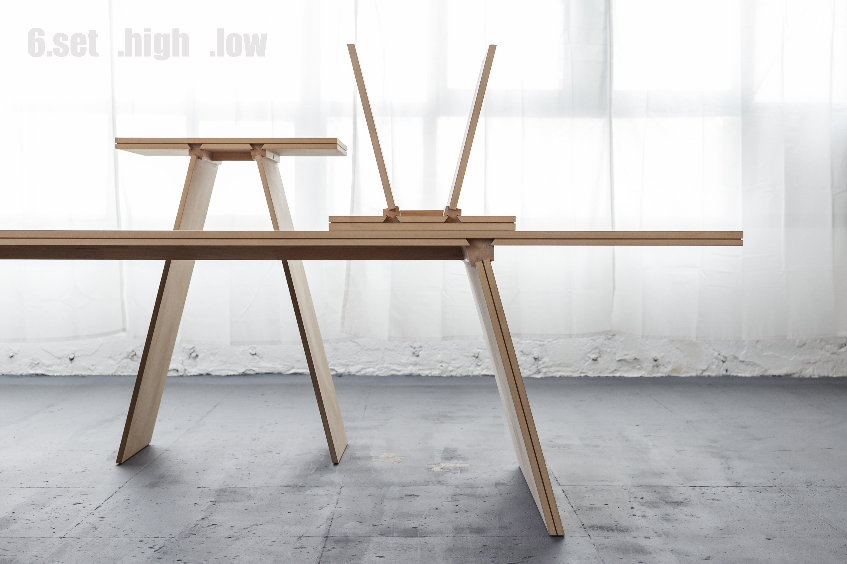 The collections’ name comes from an expression from the 50s, which refers to an ideal existential condition, a success, a general state of comfort. This expression emphasises the optimal production process, an adequate technological effort generates maximum comfort, covering all the functional, ergonomic and aesthetic aspects of products. The joint profile offers structural strength, ease of assembly and becomes the aesthetic signature of the collection. The used materials are all natural, as oak, birch and European walnut essences, treated with natural oils.