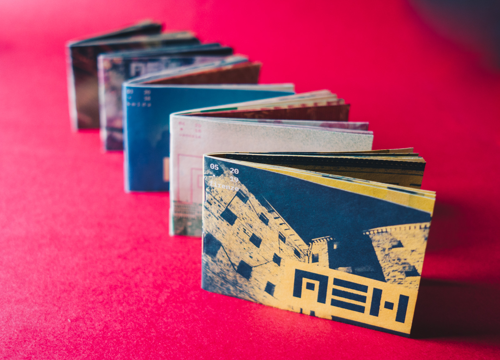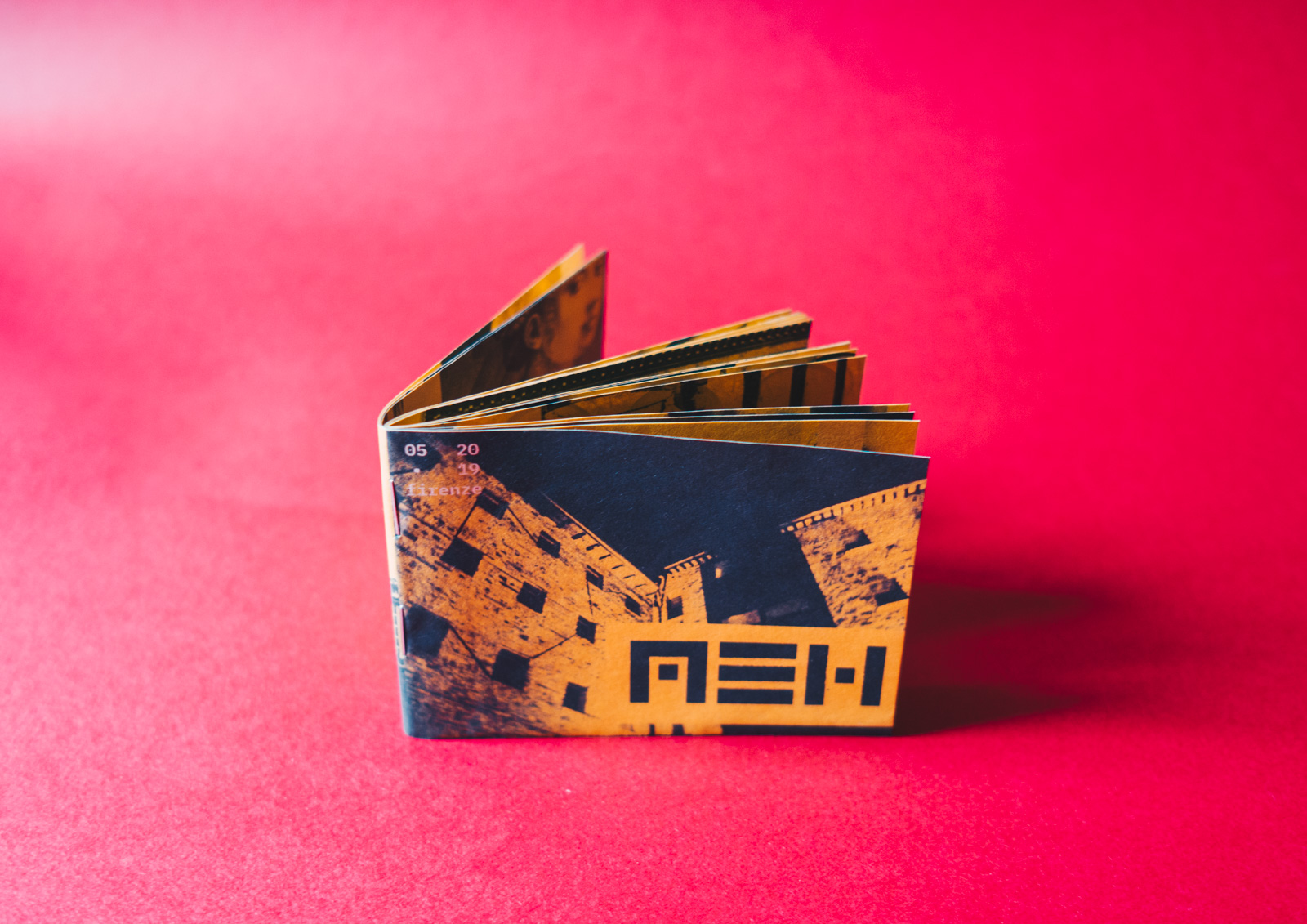 The size and number of pictures (32) is determined by the format of the paper used. Each MEH is printed on a single A3 paper folded, cut and stapled to reach an A7 format.