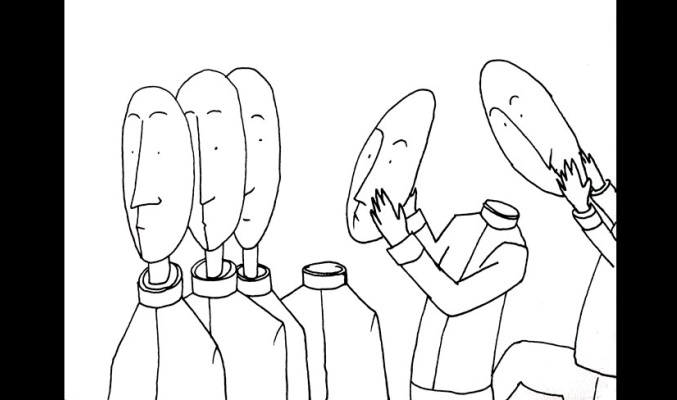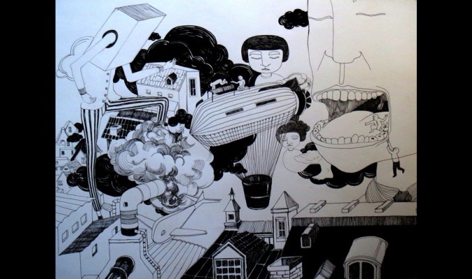 Lucrarea reprezintă o serie de ilustrații, care îmbină imaginarul cu realitatea, o lume haotică cu personaje ciudate, o căutare în zona desenului liniar, simplu, dar cu inspirație din curentul suprarealist.