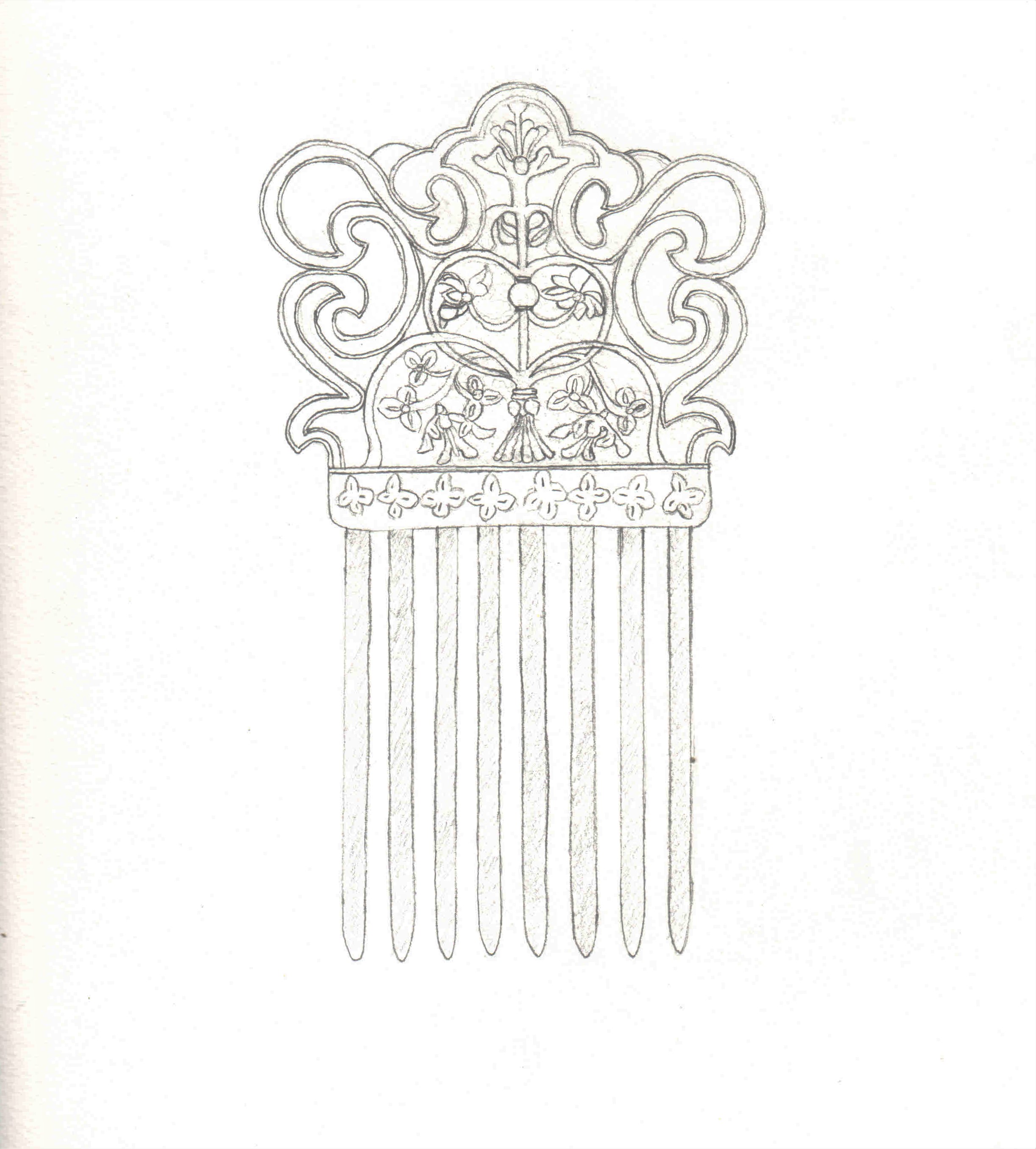 Lucrarea are un design floral elegant, făcut din materiale tradiționale. Pieptănul este propus ca obiect utilitar, poate fi purtat în păr ori poate fi folosit cu scop pur decorativ, expus în casă.