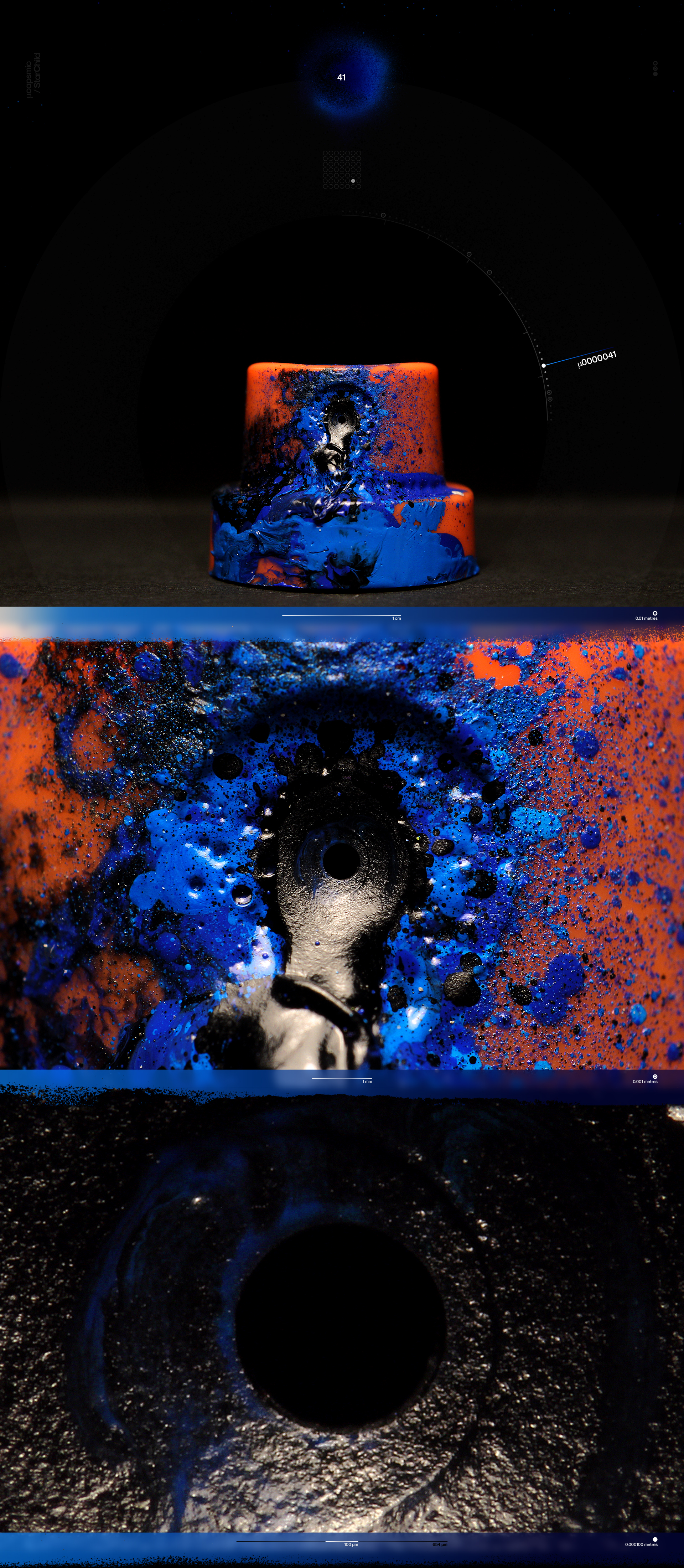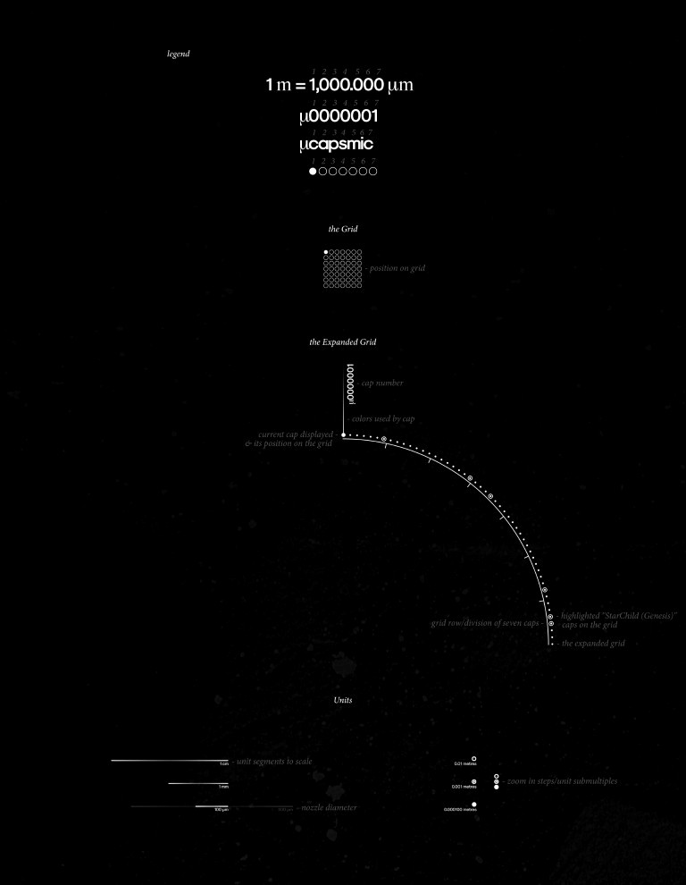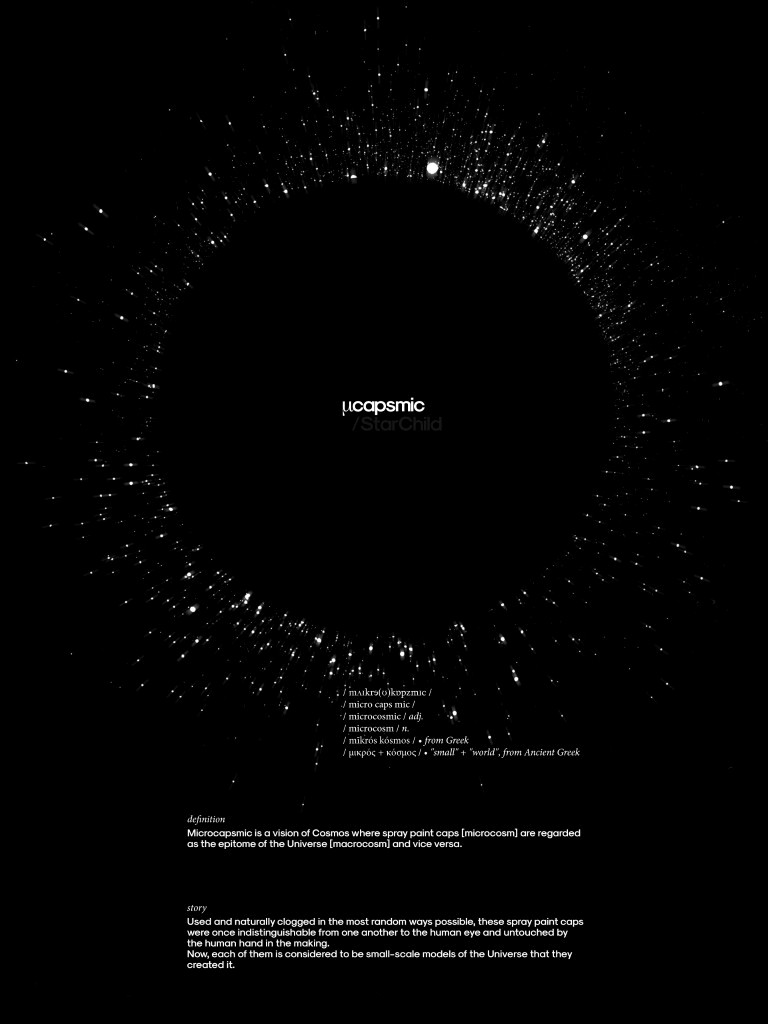 Microcapsmic is a vision of Cosmos where spray paint caps [microcosm] are regarded as the epitome of the Universe [macrocosm] and vice versa.