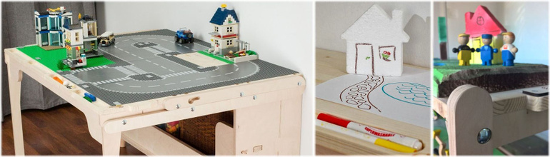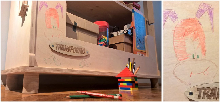 Copiii pot interacționa în multe modalități cu Transformo: poat întinde plăci de bază de Lego creând orașelul pe care l-au visat, poat folosi foi mari de carton pe care să picteze harta lumii din imaginația sa unde personajele și figurinele sale preferate vor porni în aventură, iar cu puțin ajutor pot crea forme sculptând în polistiren sau folosind tehnici de colaj. În pauzele de joacă, masa poate fi folosită la teme, citit, pictură sau orice altceva ar putea face pe o masă obișnuită. Dacă imaginația e în pauză, câteva kituri predefinite de peisaje și orășele pot veni să salveze situația.