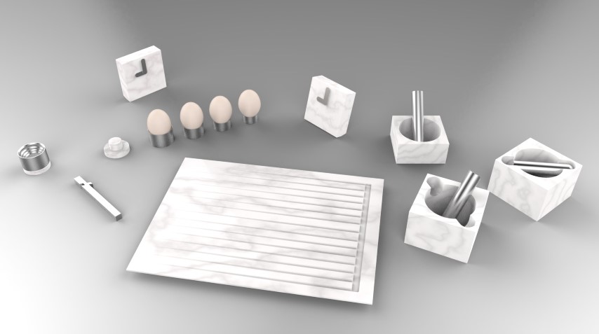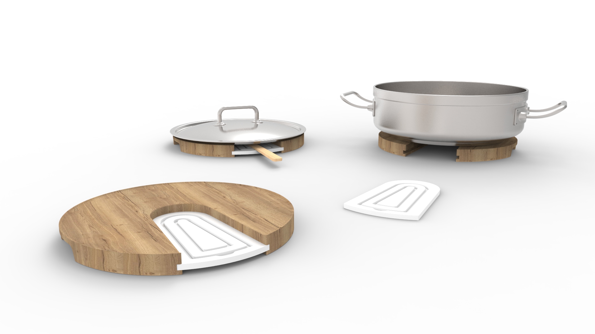 So-So is a multifunctional object that aims to solve a recurrent issue in the kitchen: overcrowding. Comprised of two parts, one for holding the spoon and one that can hold either the hot recipient or its lid.