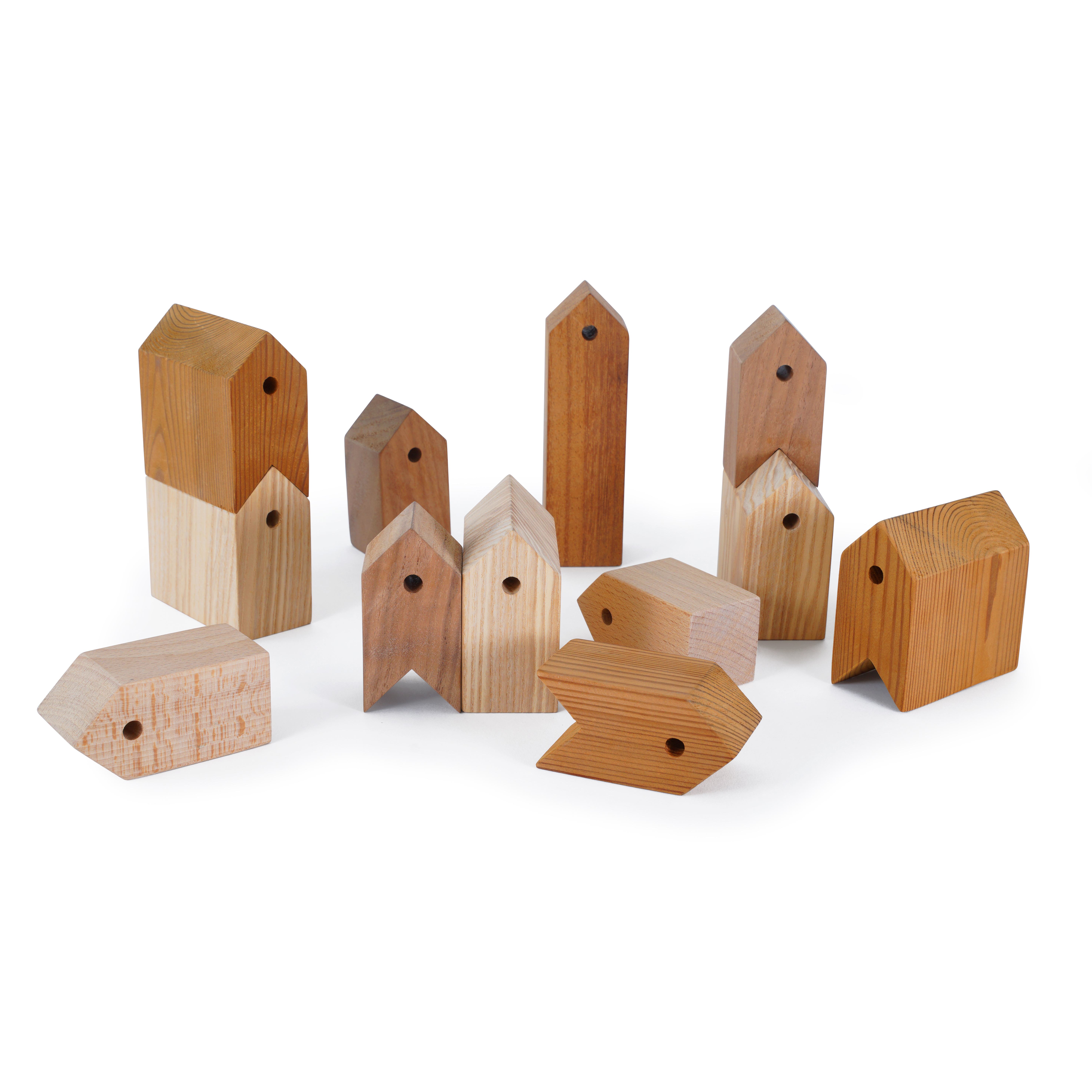 11+1 Houses is a simple wooden game and a decorative object in the same time. This is a construction and an architecture game and stimulates thinking, creativity, spatial sense and organization, raising and educating aesthetic sensitivity over simple thinks. There are 3 different tales that come with the game. Besides these, there are more ways of playing with it according to the child’s mood, personality and age.