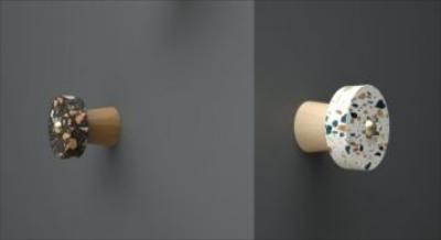 Cereall Hook is a coat rack designed to be fixed directly to the wall. It is comprised of 3 pieces: a wood part, made from leftovers in the furniture workshops, a terrazzo part and a brass screw, which joins the first two pieces together.