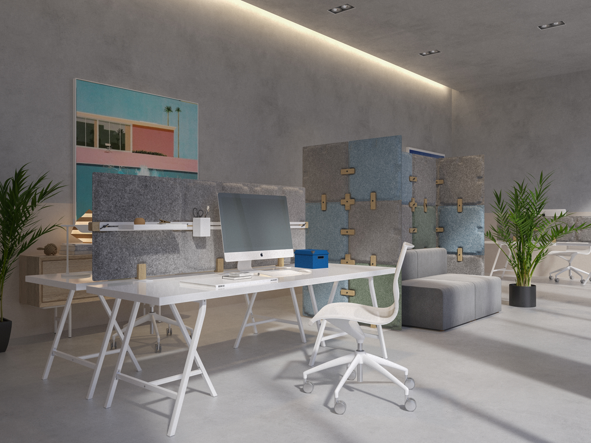 Modular, flexible, simple. +/- (plusminus) is an acoustic room divider for the office space and home. Modules can be arranged together with the help of wood parts. It can be arranged in many different ways and so can easily be adapted to needs and space. The new configuration can be used to create a private space at the desk or to separate within a room. The module is made from PET Felt shaped through compression molding and are available in choices of color and dimension. At the same time, accessories can make the dividers helpful in any kind of space.