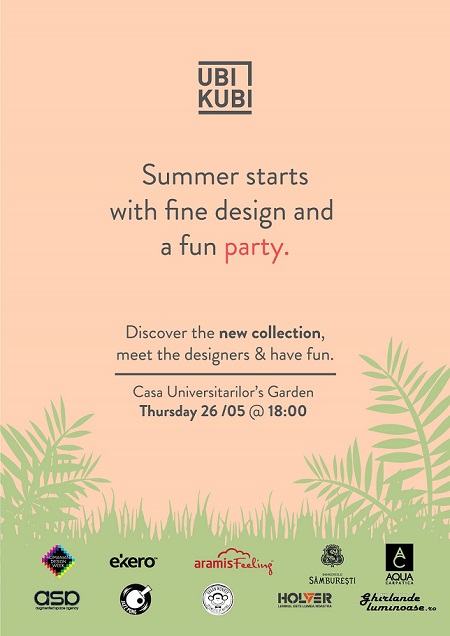 La final de mai, Ubikubi lansează noua colecție de mobilier, lămpi și accesorii pentru casă. Petrecerea va fi inaugurată în cadrul Romanian Design Week și va avea loc în grădina Casei Universitarilor. Această oază verde din centrul Bucureștiului va fi transformată într-un spațiu de joacă și descoperire, unde invitații vor face cunoștință cu cele nouă obiecte noi create de către designerii colaboratori Dragoș Motica, Ruxandra Sacalis, 201 Design Studio, Anca Fetcu Lupu, Eliza Yokina și Alexandru Ioniță.