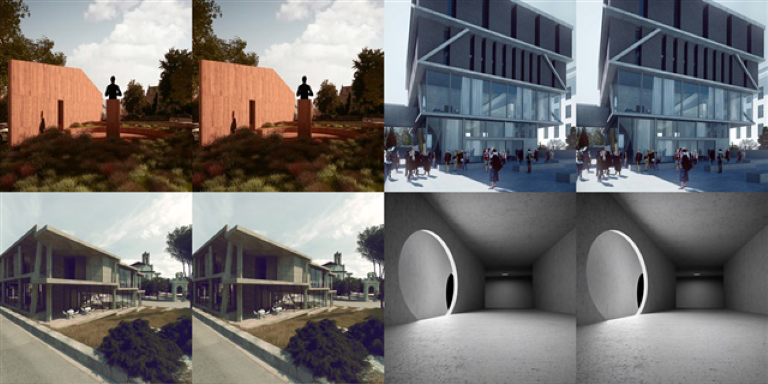 10 projects are presented through the use of imagery. The concept of the exhibition revolves around the idea of the beholder’s share and the fact that each individual formulates an interpretation of their own, from the work exhibited. Moreover, using the stereoscopic effect, the actual body of work takes its true form, only inside the viewers brain.  The physical representation of the projects it is merely a vehicle that triggers the mind to go somewhere else. This exhibition could be seen as a metaphor for a way in which we see architecture to really be.
