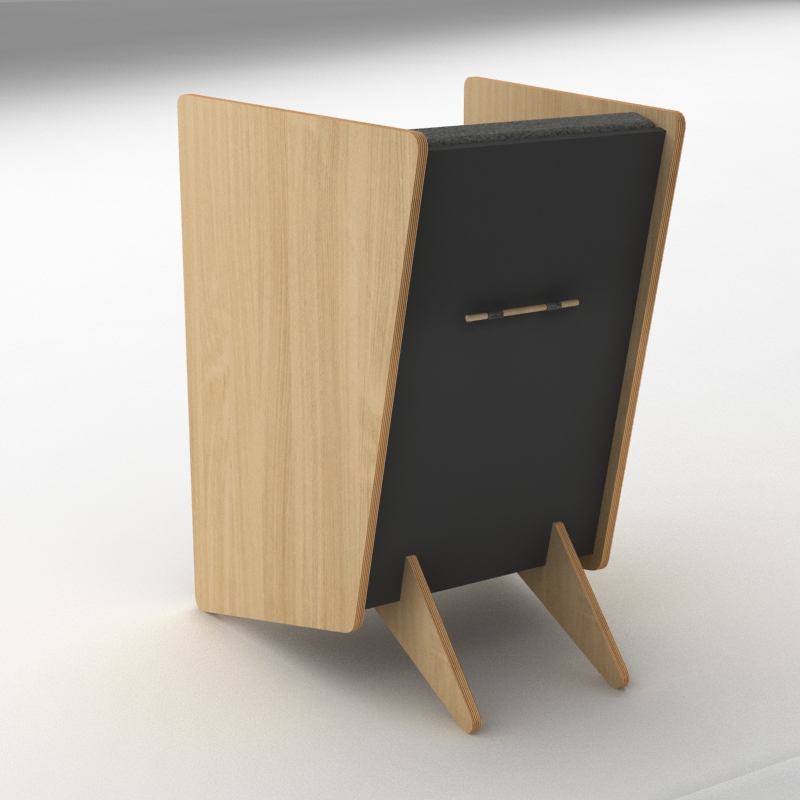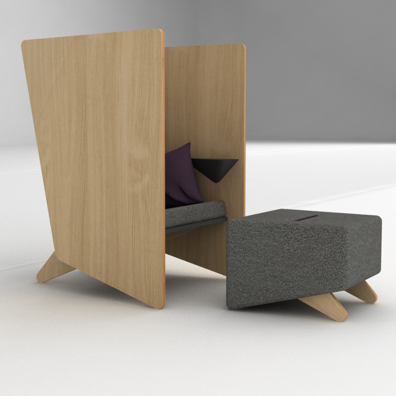 The INCOGNITO lounge chair is a cosy shelter allowing the user a degree of isolation from the daily turmoil.It is built out of composite panels (beech plywood with a MDF honeycomb core) and is designed for flat pack delivery. The seat and backrest are doubled by a foam cushion with a detachable cotton cover. Besides the cushion, the lounge chair comes equipped with two pillows that can be used either as armrests, or to configure the inside to your liking.