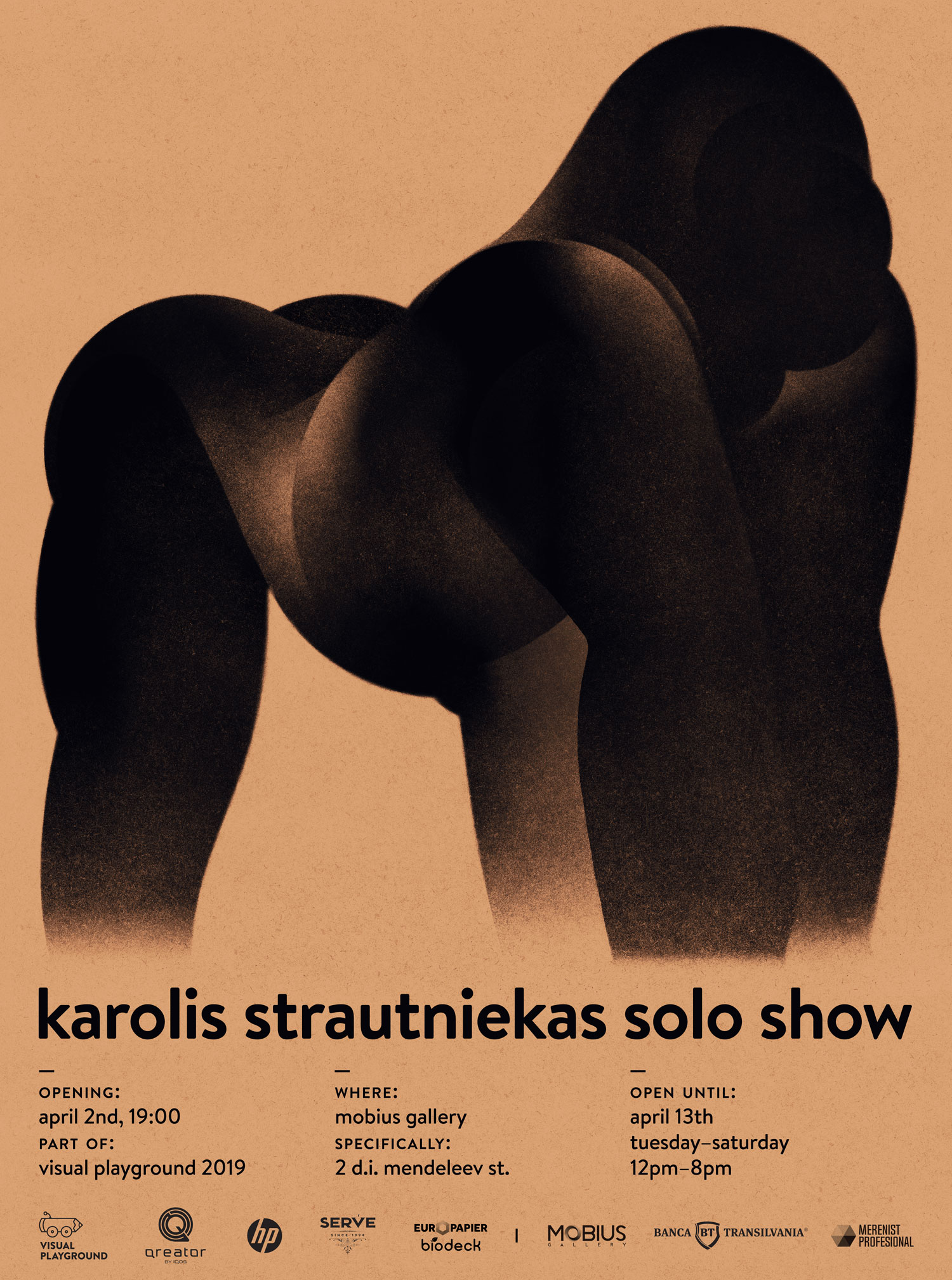 Expoziția va fi deschisă în perioada 2-13 aprilie 2019 la Mobius Gallery, Strada D. I. Mendeleev 2, București.