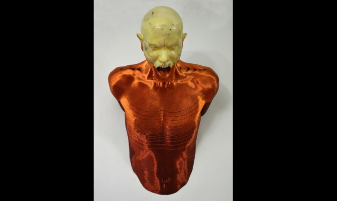 Lucrarea intitulată „Autoportret” face legătura între exterior și universul interior al individului, în care acumularea de tensiuni și presiuni, ce pornesc din cavitatea abdominală, ajung să treacă în plan exterior, materializându-se prin succesivitatea sârmei de cupru. La nivelul craniului materialele creează o tensiune și mai mare, ce ajunge să se transpună printr-un strigăt.