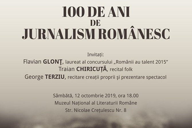 Avem și evenimente pentru veșnicii curioși care preferă să-și petreacă weekend-ul aflând informații de pretutindeni. Muzeul Național al Literaturii Române vă așteaptă sâmbătă de la ora 18:00 să urmăriți un spectacol de poezie și muzică dedicat împlinirii a 100 de ani de la înființarea Uniunii Ziariștilor Profesioniști.