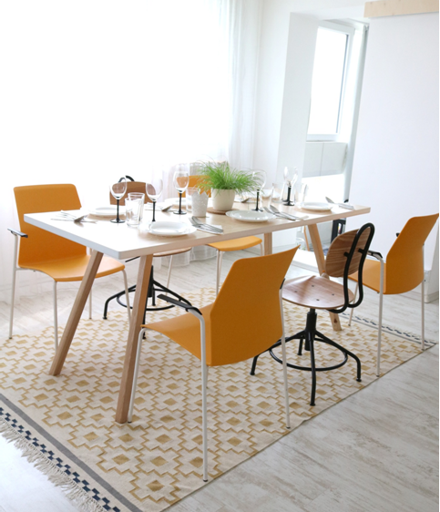 Lucrăm în special cu lemn masiv, placaj și metal, dar am inserat de-alungul timpului în proiectele noastre și elemente ce țin de mase plastice, sticlă, metale neferoase, piatră, textil etc.