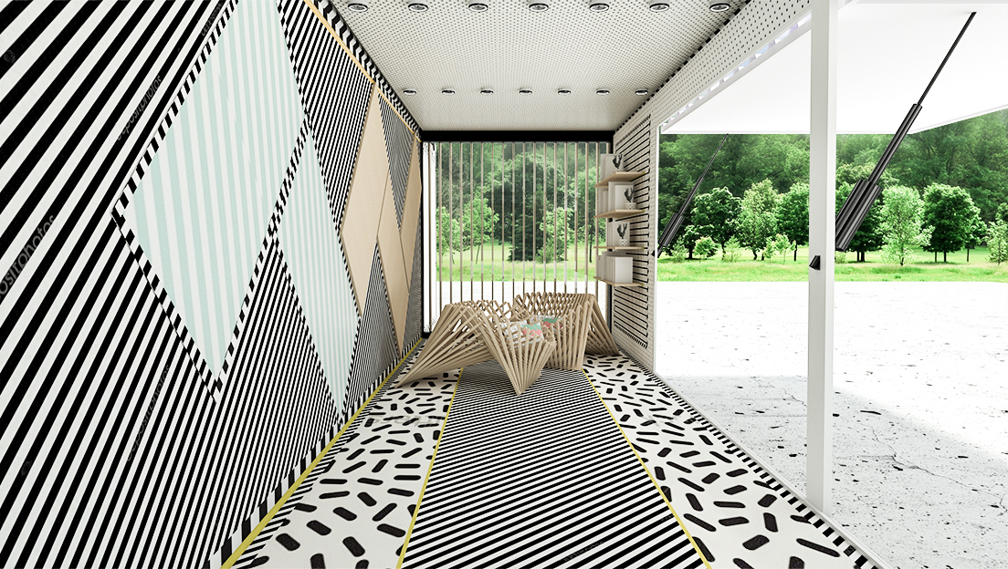 Stilul Memphis a fost adaptat in procesul gandirii proiectului cu scop adaugarea unei personalitati vivide a spatiului.