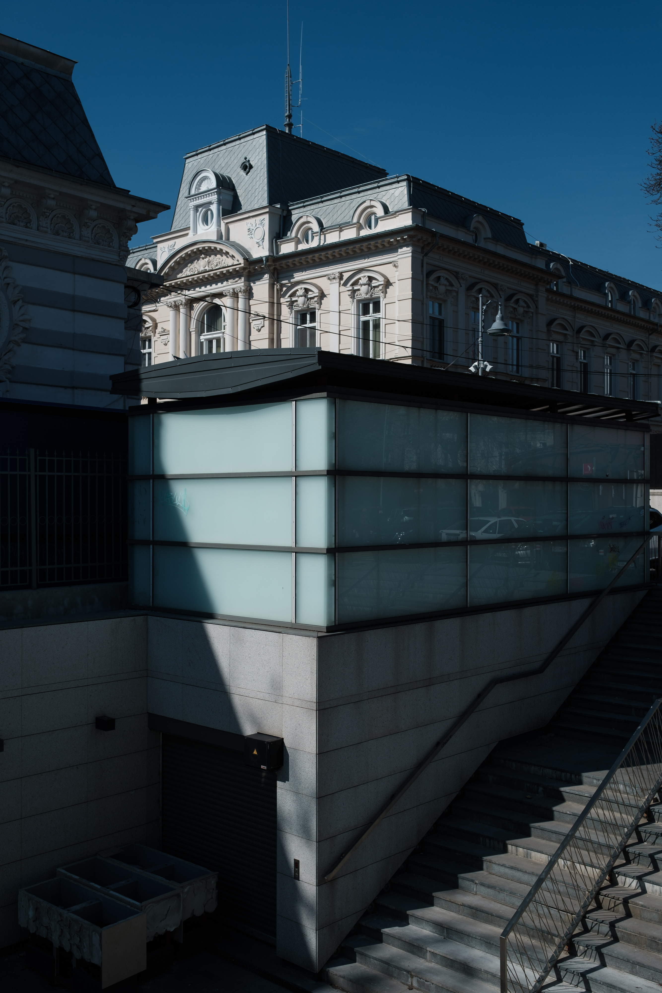 Pe strada Biserica Amzei, complexul de clădiri în stil neoromânesc, care a aparținut familiei Brătianu și care are în centrul său Așezământul Brătianu, nu este în totalitate abandonat.