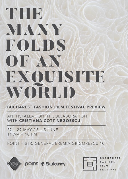 Selected as a connected event within Romanian Design Week 2016, The Many Folds of an Exquisite World exhibition presents a sample of experimental cinema from the field of the international fashion scene. Visitors will be able to pervade the very core of the industry, exploring a dynamic textile labyrinth, which will host looping projections of shorts relevant for the concept of fashion film.