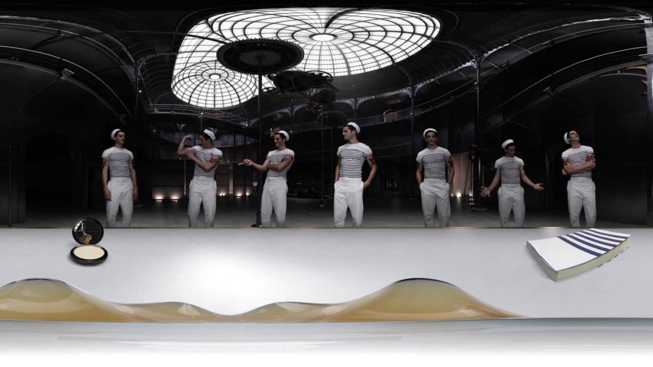 This short film offers a complete immersive experience into The Factory, where sailors and amazones wearing the famous corset walk around the perfume bottle.