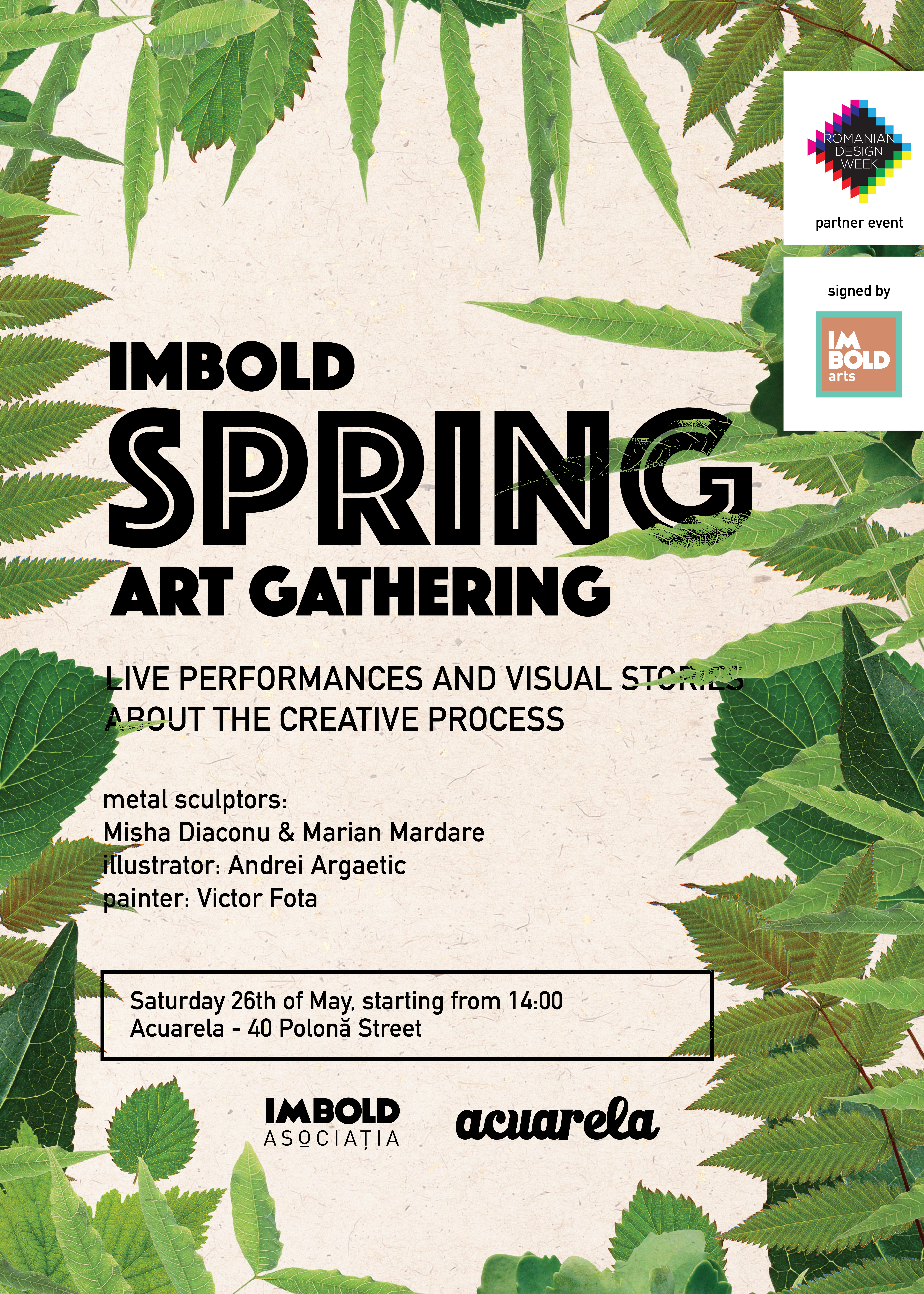 On Saturday, the 26th of May at 14:00, Imbold Pop up Gallery recreates a workshop space for artists at Acuarela. The event is part of the Romanian Design Week happenings