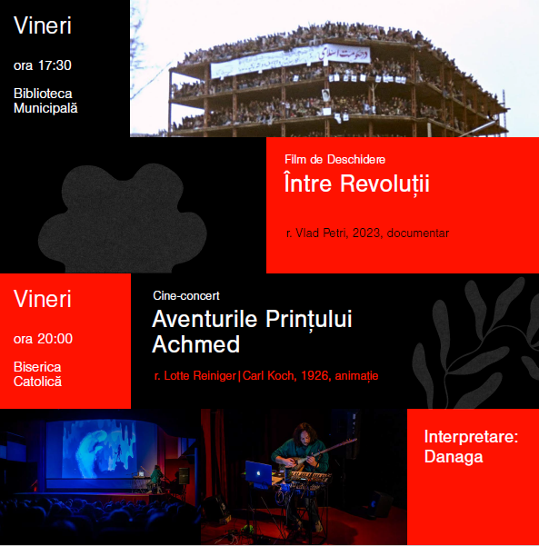Ediția se deschide oficial cu filmul Între Revoluții (r. Vlad Petri), ,urmat de cine-concertul care, de data aceasta, va aduce în lumina reflectoarelor filmul ”Aventurile Prințului Achmed”, regizat de către Lotte Reiniger, acompaniat LIVE de muzica originală creată de Danaga.