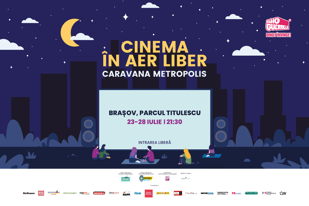 Caravana Metropolis - Cinema în aer liber va poposi din nou în Brașov, între 23 și 28 iulie, aducând magia filmului în Parcul Nicolae Titulescu. Proiecțiile vor începe în fiecare seară la ora 21:30, iar selecția de filme include producții internaționale premiate și apreciate de critici, multe dintre acestea fiind în premieră în România. Accesul publicului la eveniment este gratuit.