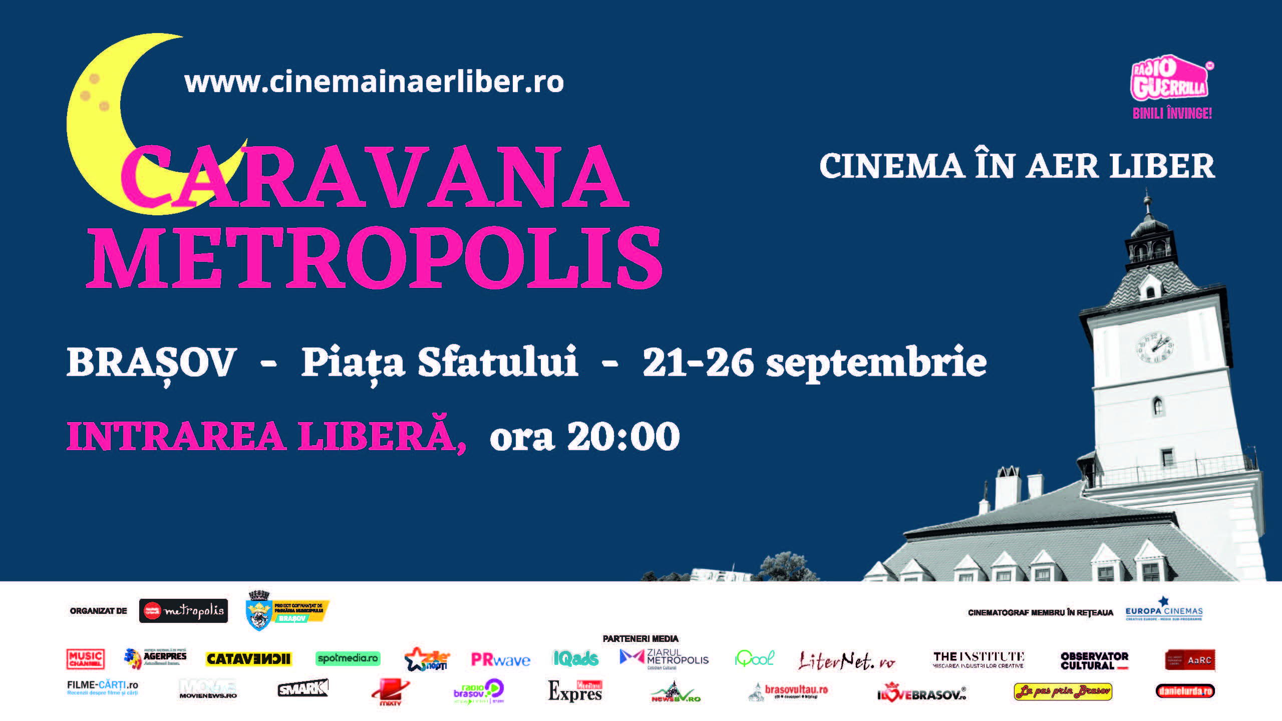 Caravana Metropolis- cinema în aer liber se întoarce în Piața Sfatului din Brașov cu cele mai bune filme din ultimul an, cu distincții importante la festivaluri de film internaționale prestigioase. Acestea vor putea fi urmărite între 21 și 26 septembrie, de la ora 20:00, în spațiul de proiecție amenajat în centrul Brașovului. Intrarea la proiecții este liberă.