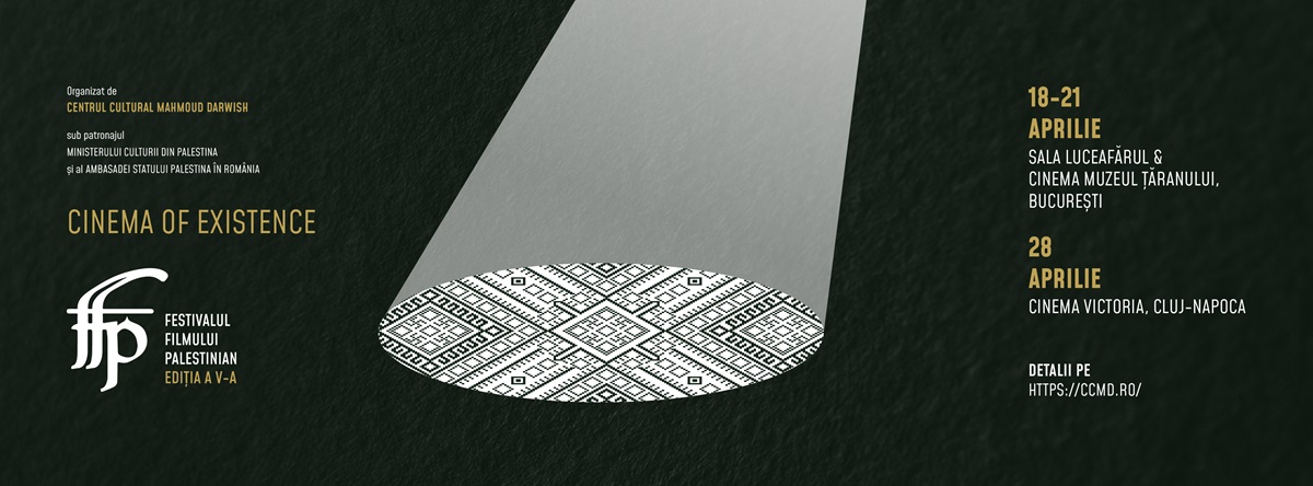 Centrul Cultural Mahmoud Darwish are plăcerea să anunțe cea de-a cincea ediție a Festivalului Filmului Palestinian, organizată de Centrul Cultural Mahmoud Darwish, sub patronajul Ministerului Culturii din Palestina și al Ambasadei Statului Palestina în România, între 18 și 21 aprilie la București și pe 28 aprilie la Cluj-Napoca.