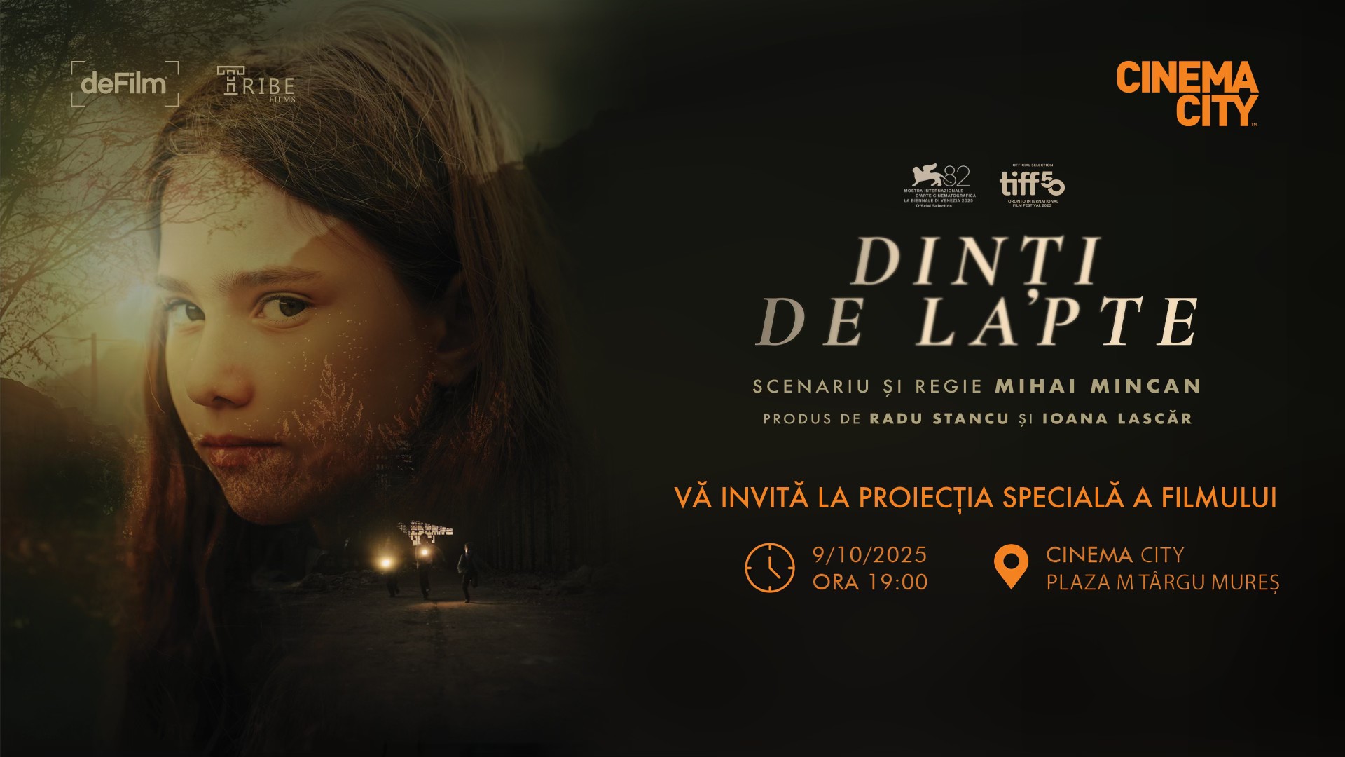 Spectatorii clujeni vor avea ocazia să vadă filmul „Dinți de lapte” în avanpremieră la Cinema Victoria, pe 8 octombrie, de la ora 20:00. Regizorul Mihai Mincan, actrița Marina Palii și producătoarea Ioana Lascăr vor participa la proiecție și la discuția despre film de la final.