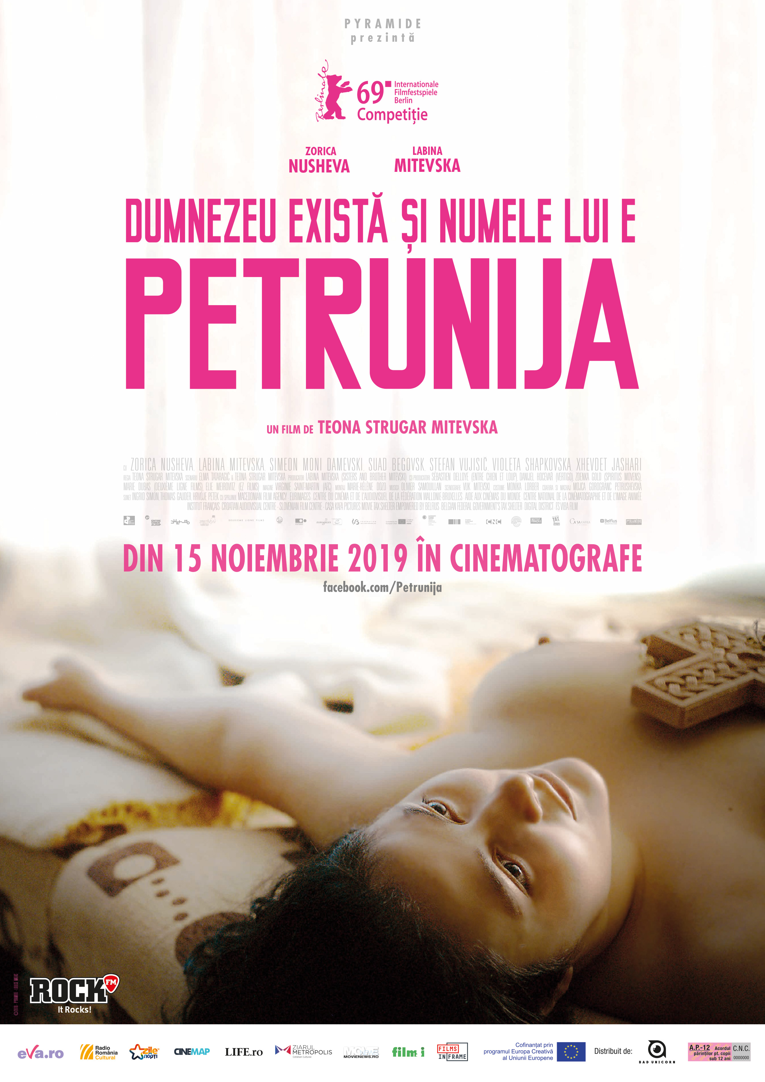 „Dumnezeu există și numele lui e Petrunija / Gospod postoi, imeto i' e Petrunija / God Exists, Her Name Is Petrunija” (Macedonia, 2019, R. Teona Strugar Mitevska) este filmul câștigător a două premii la Berlinale 2019, unul dintre cele trei finaliste Lux Prize 2019 și este inclus în lista EFA Feature Film Selection, filme recomandate pentru nominalizarea la European Film Awards 2019. Prezentat în avanpremieră la TIFF 2019 și în cadrul Festivalului Filmului European, filmul s-a bucurat de un real succes de public.