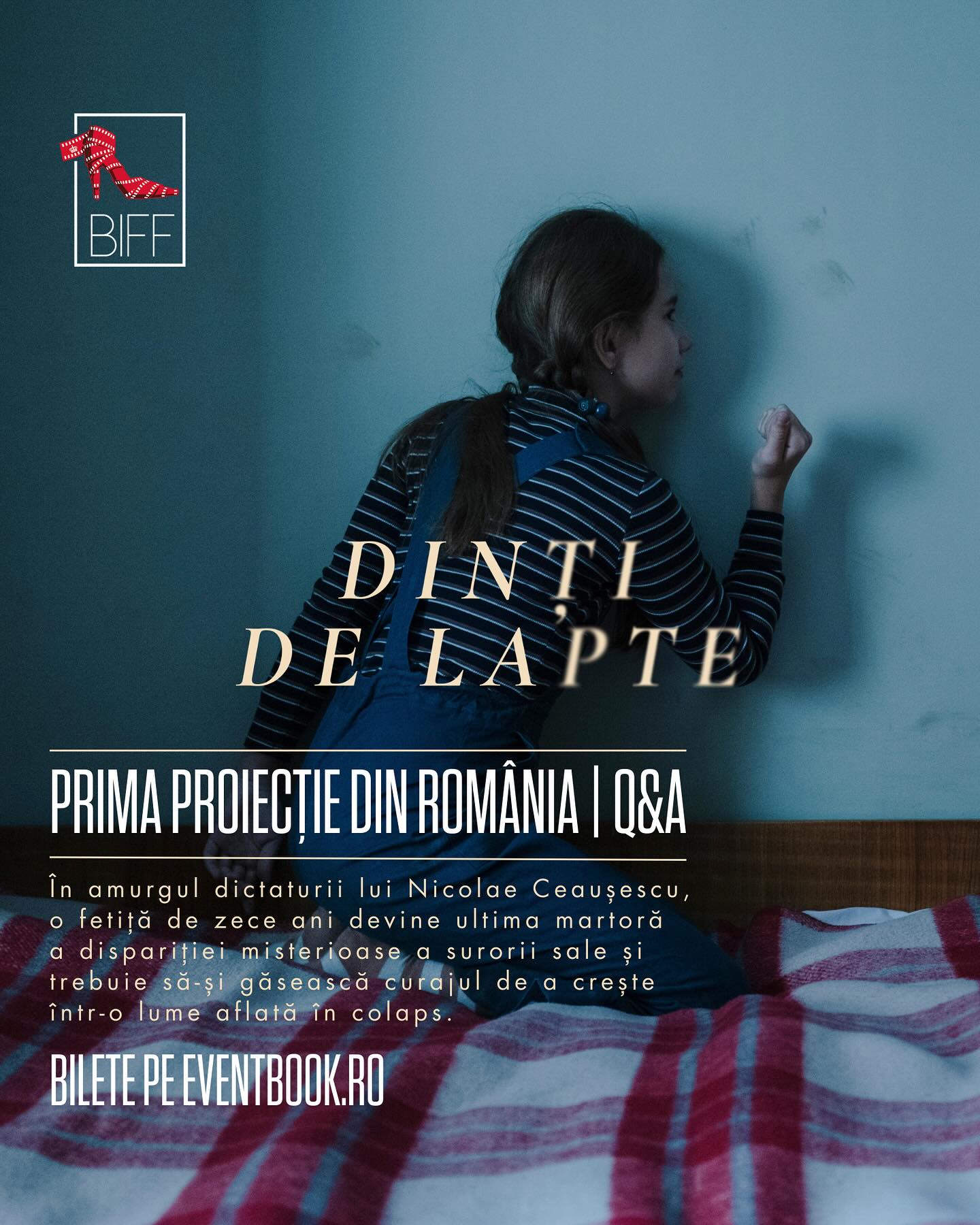 „Dinți de lapte”, al doilea lungmetraj semnat de regizorul și scenaristul Mihai Mincan, deschide cea de a XXI-a ediție a Bucharest International Film Festival (BIFF)! La evenimentul ce va avea loc pe 19 septembrie, de la 19:30, la Cinema Muzeul Țăranului, studioul Horia Bernea, în cadrul galei de deschidere a festivalului, vor participa regizorul Mihai Mincan, producătorii Ioana Lascăr și Radu Stancu (deFilm), actorul István Téglás, actrițele Marina Palii și Mihaela Rădescu, actorii debutanți (copii) Emma Ioana Mogoș, Lara Comănescu, Albert Ciută, Karina Gherasim, editorul Dragoș Apetri, operatorul Andrei Oană, compozitorul Marius Leftărache, scenografa Anamaria Tecu, alături de Dana Păpăruz (designer costume) și Florentina Bratfanof (directoare de casting).