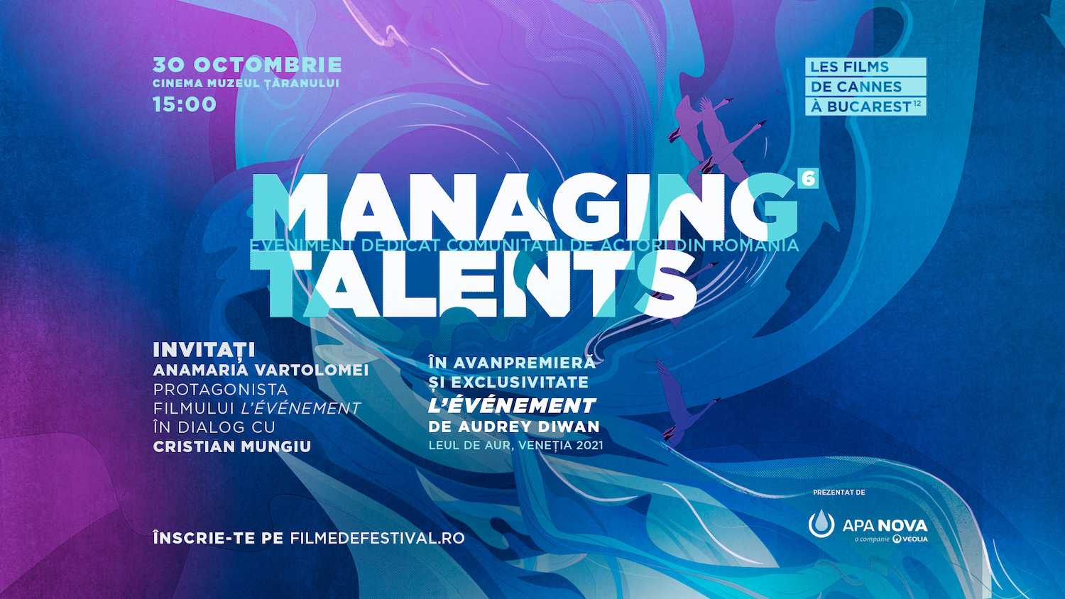 Totodată, vă mai pregătim o supriză – practică și folositoare – sperăm. Lăsați aparatele deschise și rămâneți cu ochii pe Managing Talents. Și nu uitați: accesul la eveniment e rezervat exclusiv actorilor – locurile sunt limitate – iar în sală vor avea acces primii înscriși – și care respectă condițiile de participare la evenimente stabilite de autorități.”