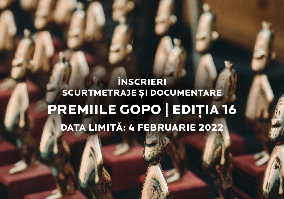 Gala Premiilor Gopo, cel mai important eveniment care celebrează și recompensează anual realizările cinematografiei românești, anunță apelul de înscrieri pentru categoriile de documentar și scurtmetraj ale ediției cu numărul 16, programată în luna aprilie. Data limită pentru înscrieri: 4 februarie 2022. Nominalizările vor fi anunțate în luna martie.