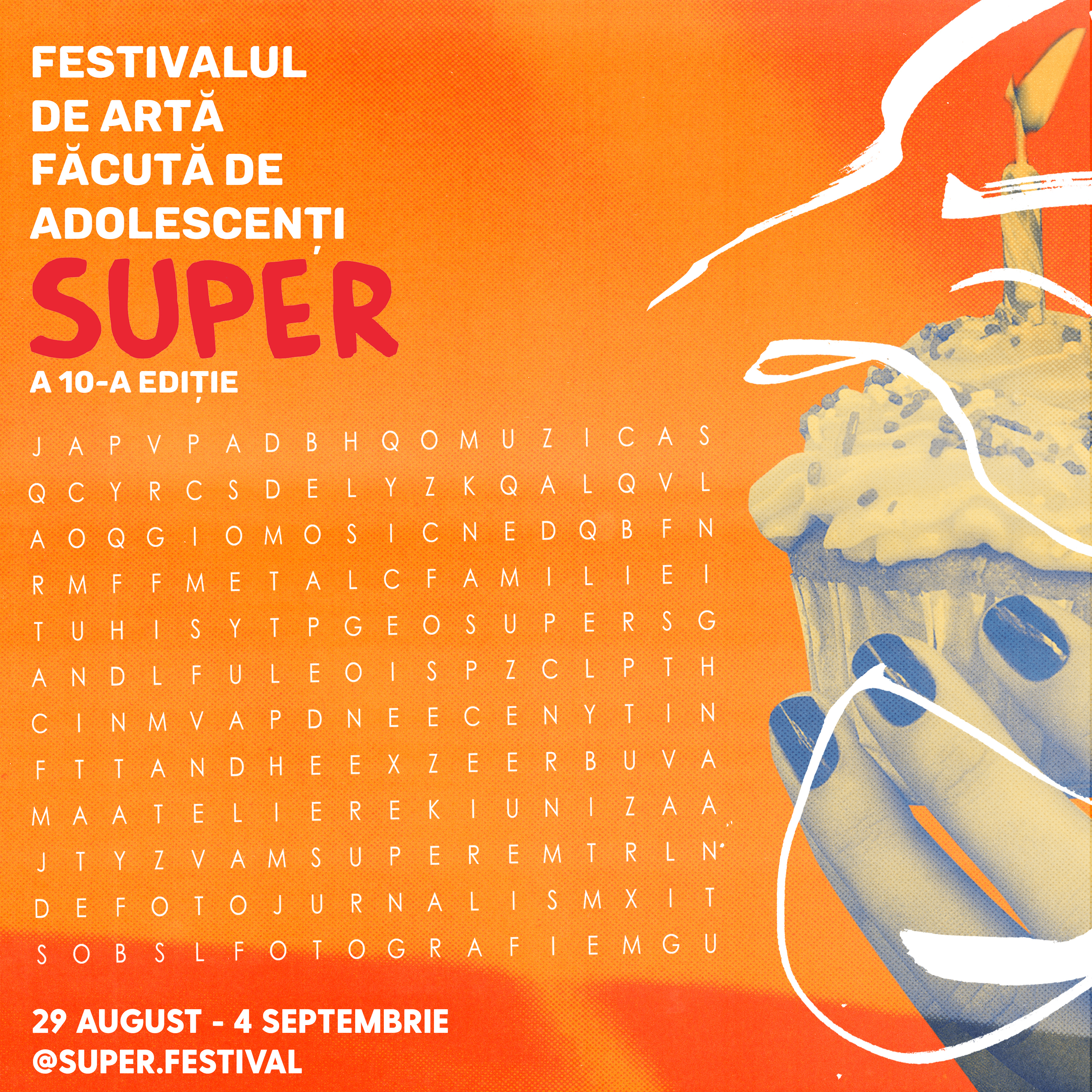 Între 29 august și 4 septembrie 2022, ONG-ul Super a pregătit o serie de proiecții de film, concerte, o expoziție de artă și lansarea unei antologii de poezie, realizate de adolescenți din toată lumea, toate reunite sub egida celei de-a 10-a ediții a Festivalului Super. După zece ani în care festivalul a crescut de la o ediție la alta, Super ajunge în cele mai importante spații culturale din București de până acum: Cinema Muzeul Țăranului, Grădina cu Filme – Cinema & More, Galeria S.E.N.A.T. - Combinatului Fondului Plastic, Expirat, Platforma Wolff și ArtHub Bucharest. Mai mult, între 26 august și 4 septembrie se vor desfășura atelierele de film și poezie Super10 în spațiile Universității Naționale de Artă Teatrală și Cinematografie „I. L. Caragiale” și ArtHub Bucharest.