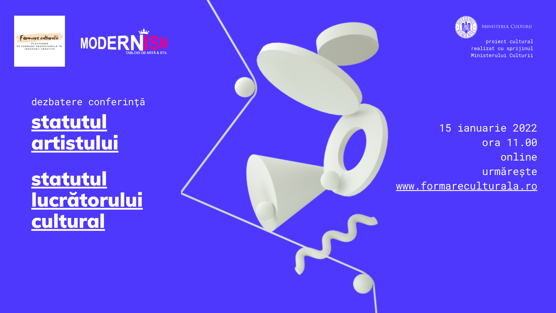 Proiectul „Conferință: despre statutul artistului și statutul lucrătorului cultural”, produs de platforma Formare Culturală, este compus din panel-uri tematice, dedicate statutului artistului și al lucrătorului cultural în România, incluzând contextul discuțiilor privind statutul artistului de după 1990, contextul pandemic (început în 2020), și contextul discuțiilor din spațiul public românesc cu privire la aceste subiecte, inclusiv cele prezentate în programul de guvernare secțiunea Cultură (octombrie 2021), Planul Național de Redresare și Reziliență al României (octombrie 2021). Mai mult, în PNRR există angajament de pregătire și intrare în vigoare a unei legi dedicate statutului lucrătorului cultural, în prima parte a anului 2023.